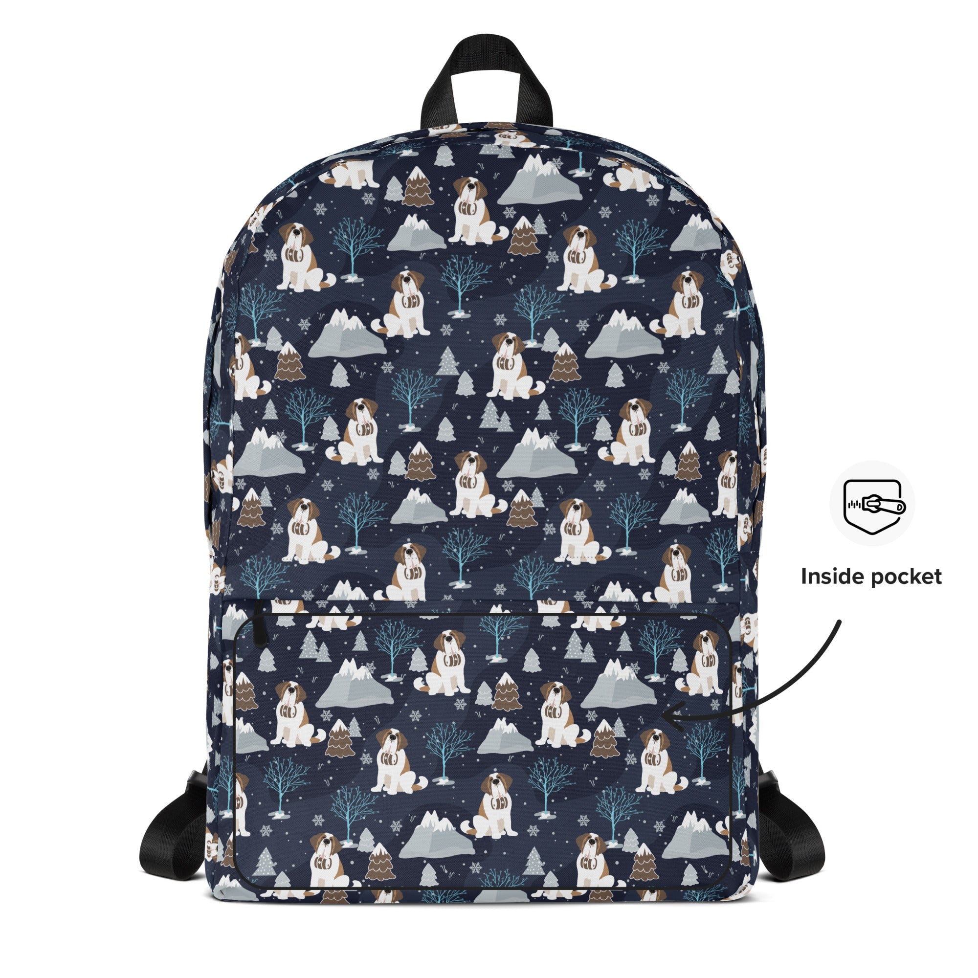 Whether you're chasing trails, heading to class, or heading out with your Saint Bernard sidekick, this medium-sized backpack is up for the adventure. With a roomy interior, a padded laptop compartment, smart pockets, and water-resistant fabric, it keeps all your essentials organized and protected by surprise showers and slobbery kisses.
