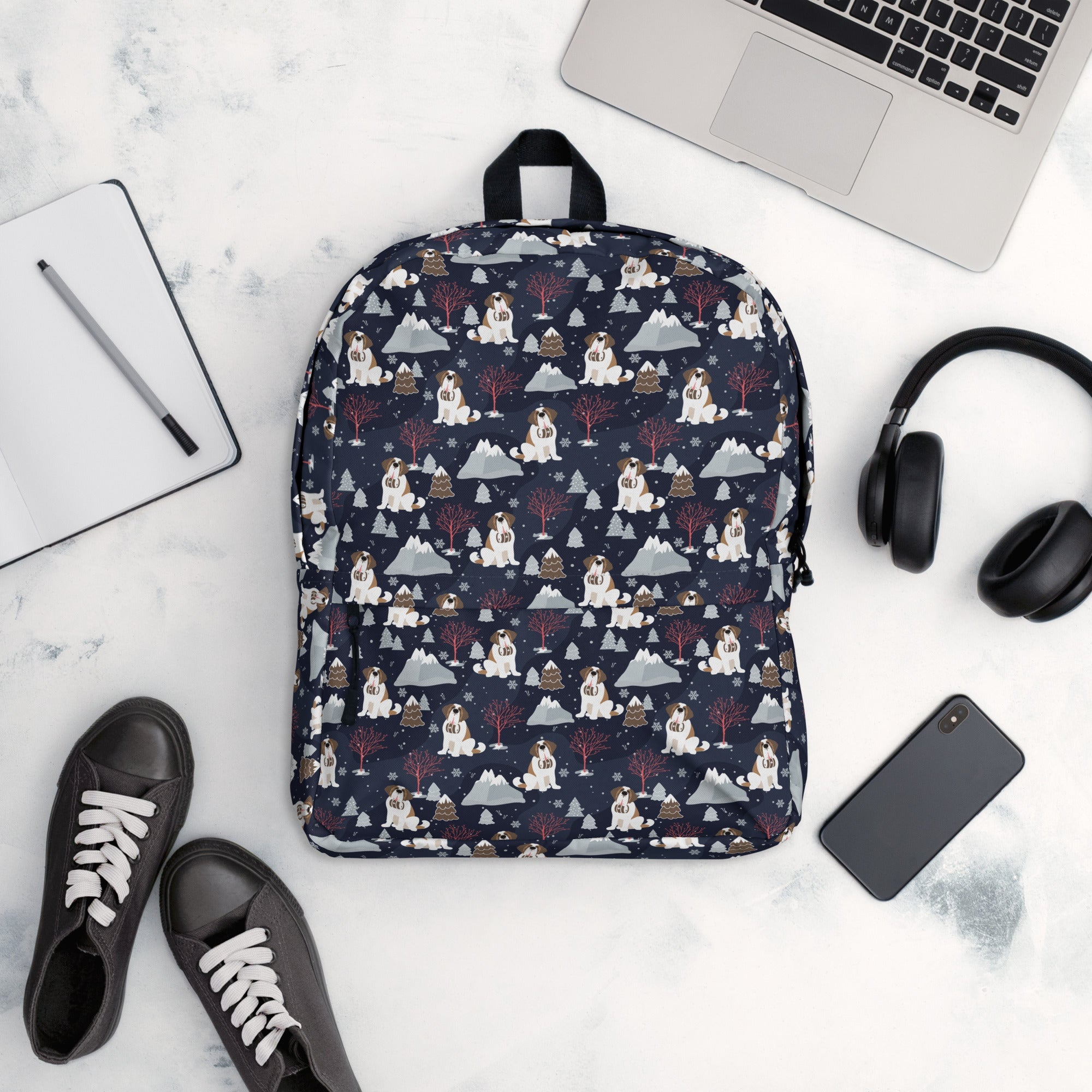 Whether you're chasing trails, heading to class, or heading out with your Saint Bernard sidekick, this medium-sized backpack is up for the adventure. With a roomy interior, a padded laptop compartment, smart pockets, and water-resistant fabric, it keeps all your essentials organized and protected by surprise showers and slobbery kisses.