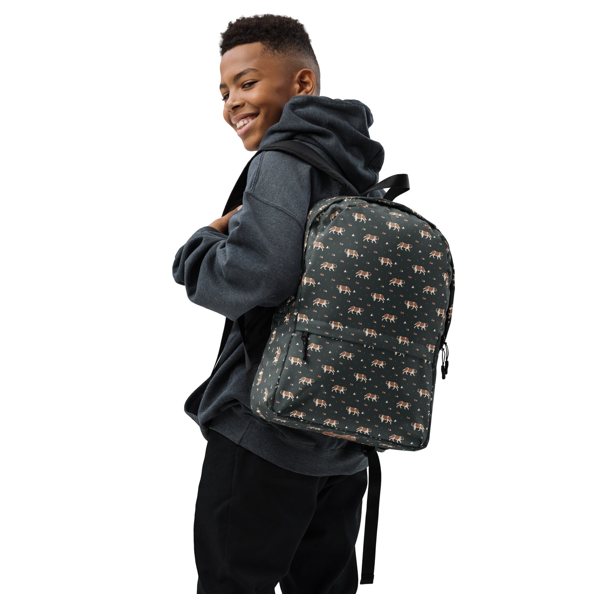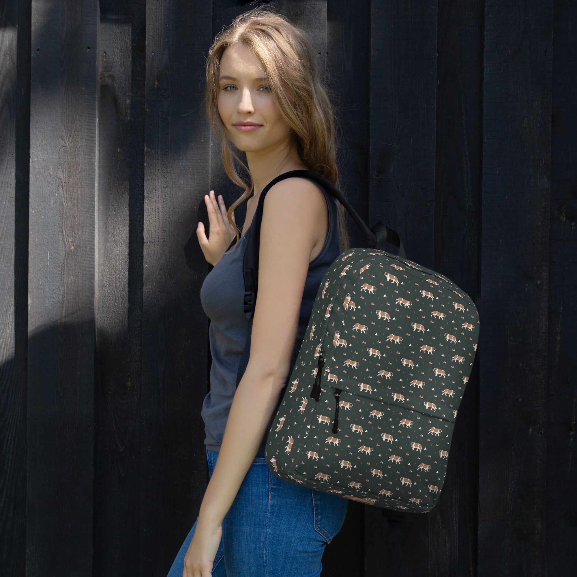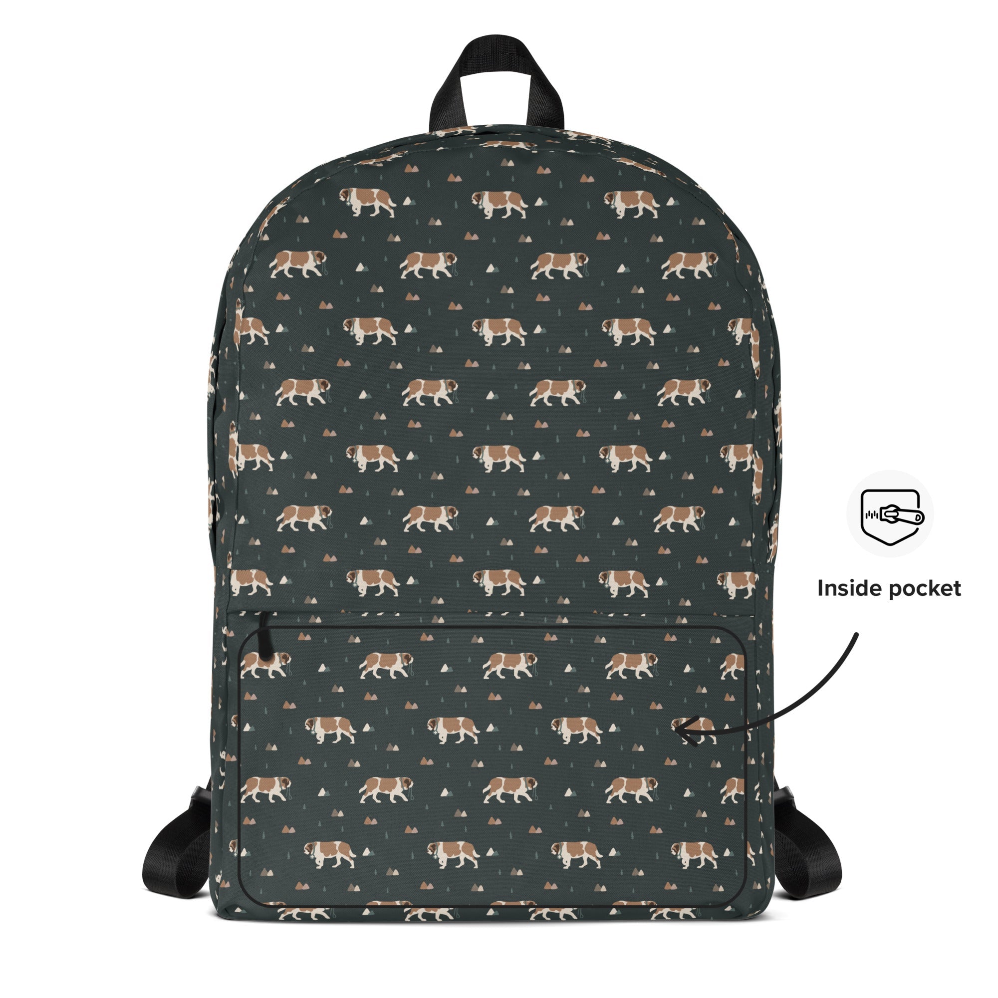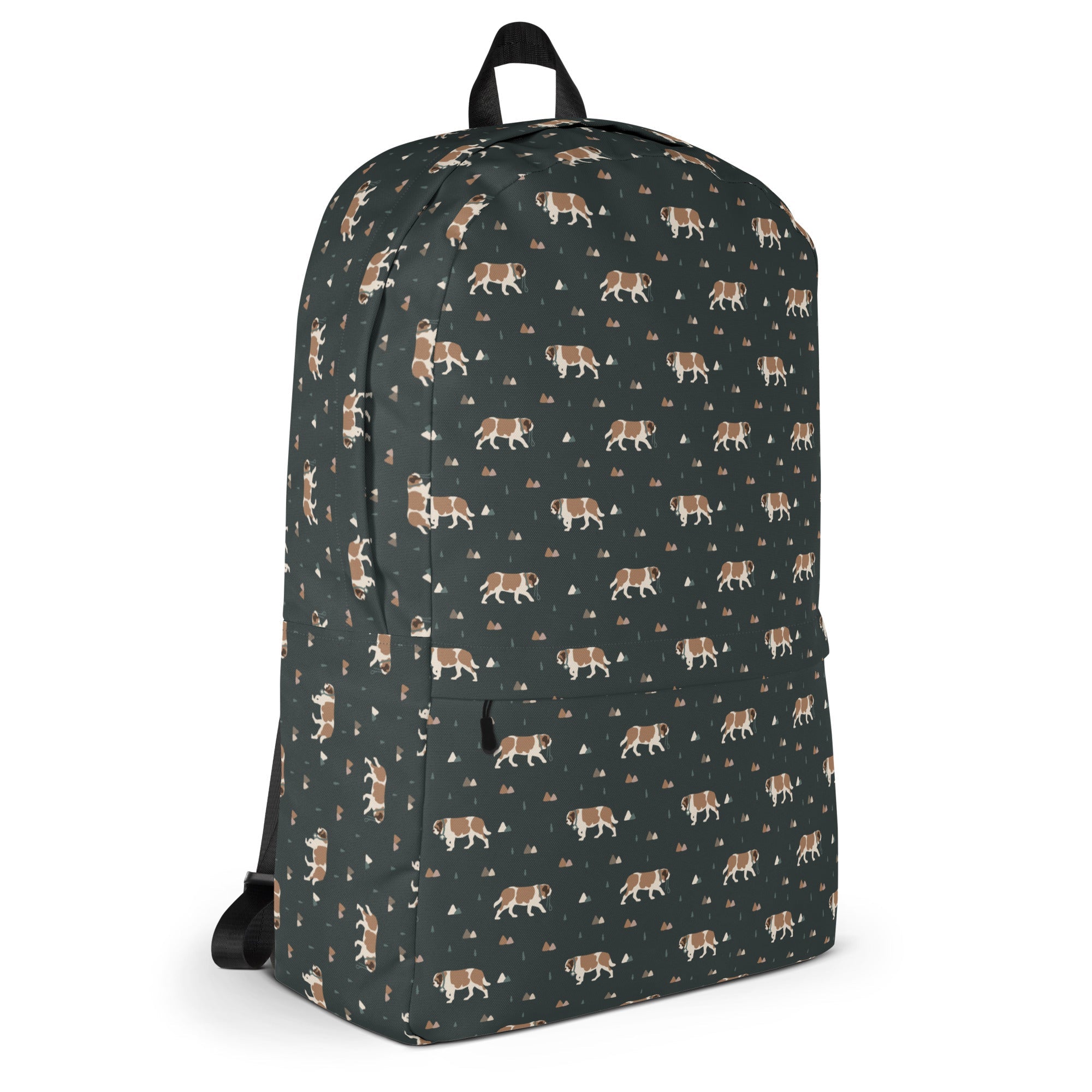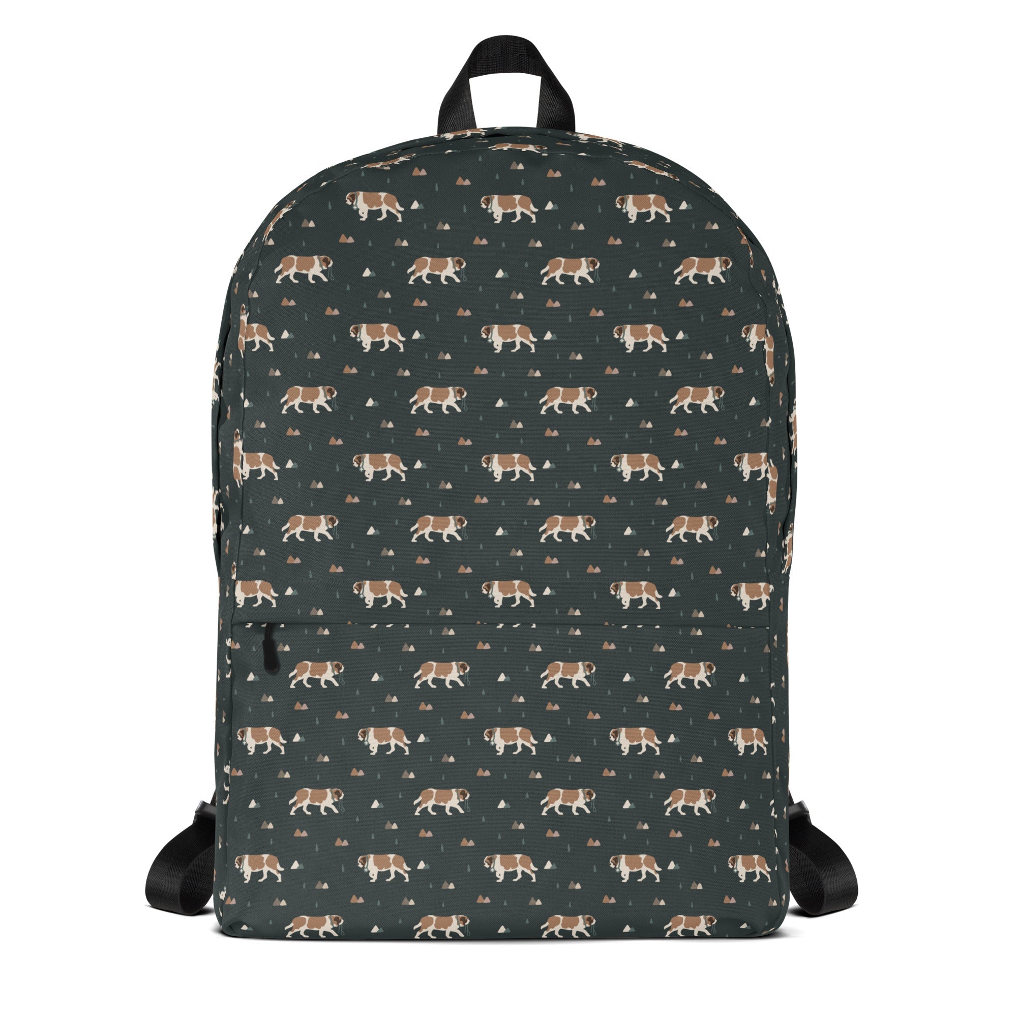 Whether you're chasing trails, heading to class, or heading out with your Saint Bernard sidekick, this medium-sized backpack is up for the adventure. With a roomy interior, a padded laptop compartment, smart pockets, and water-resistant fabric, it keeps all your essentials organized and protected by surprise showers and slobbery kisses.