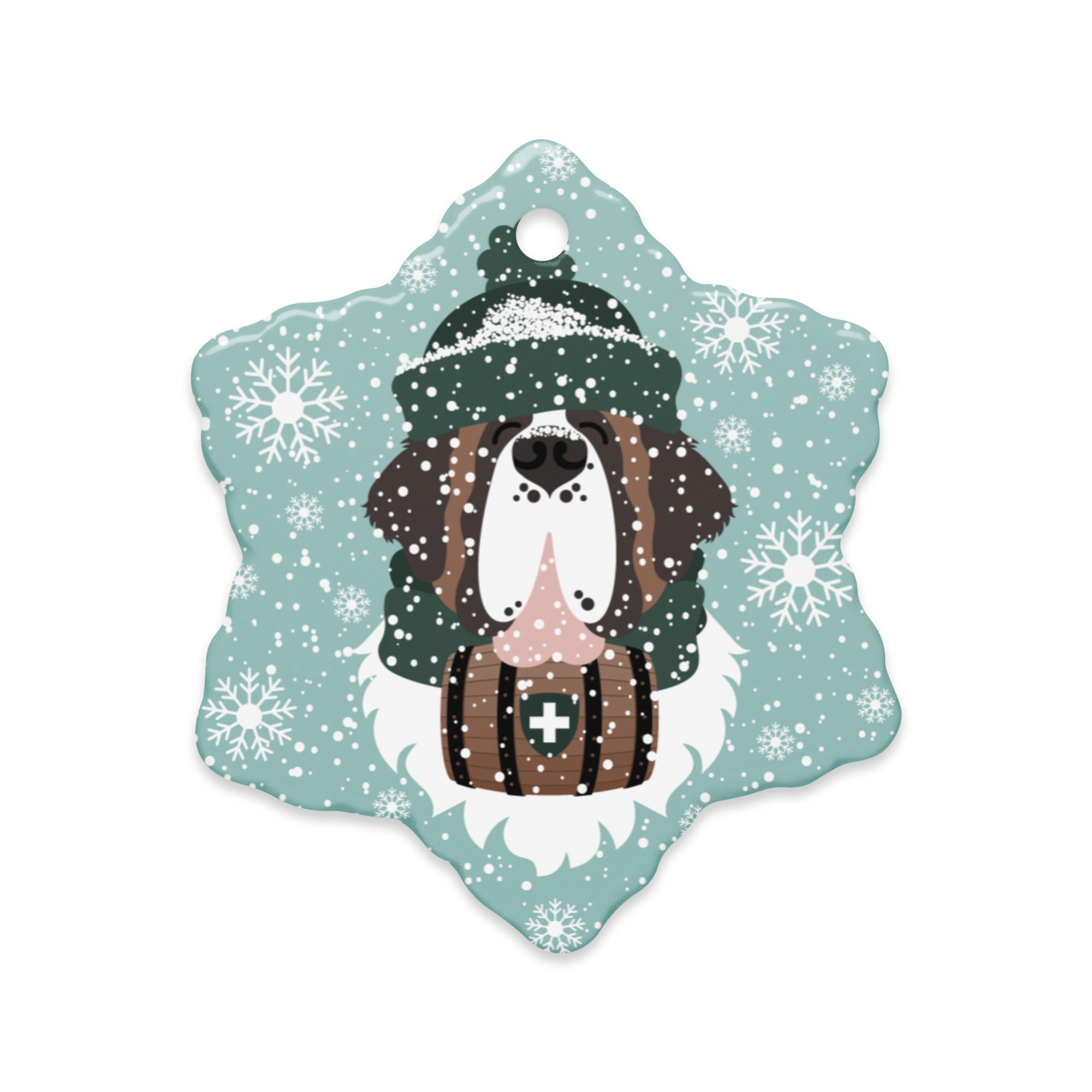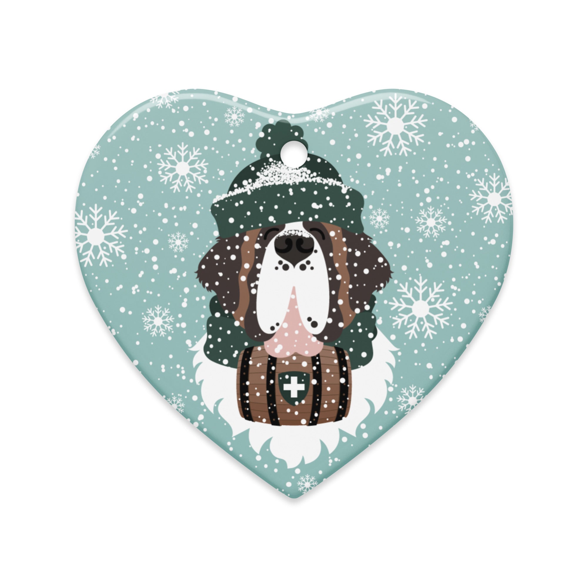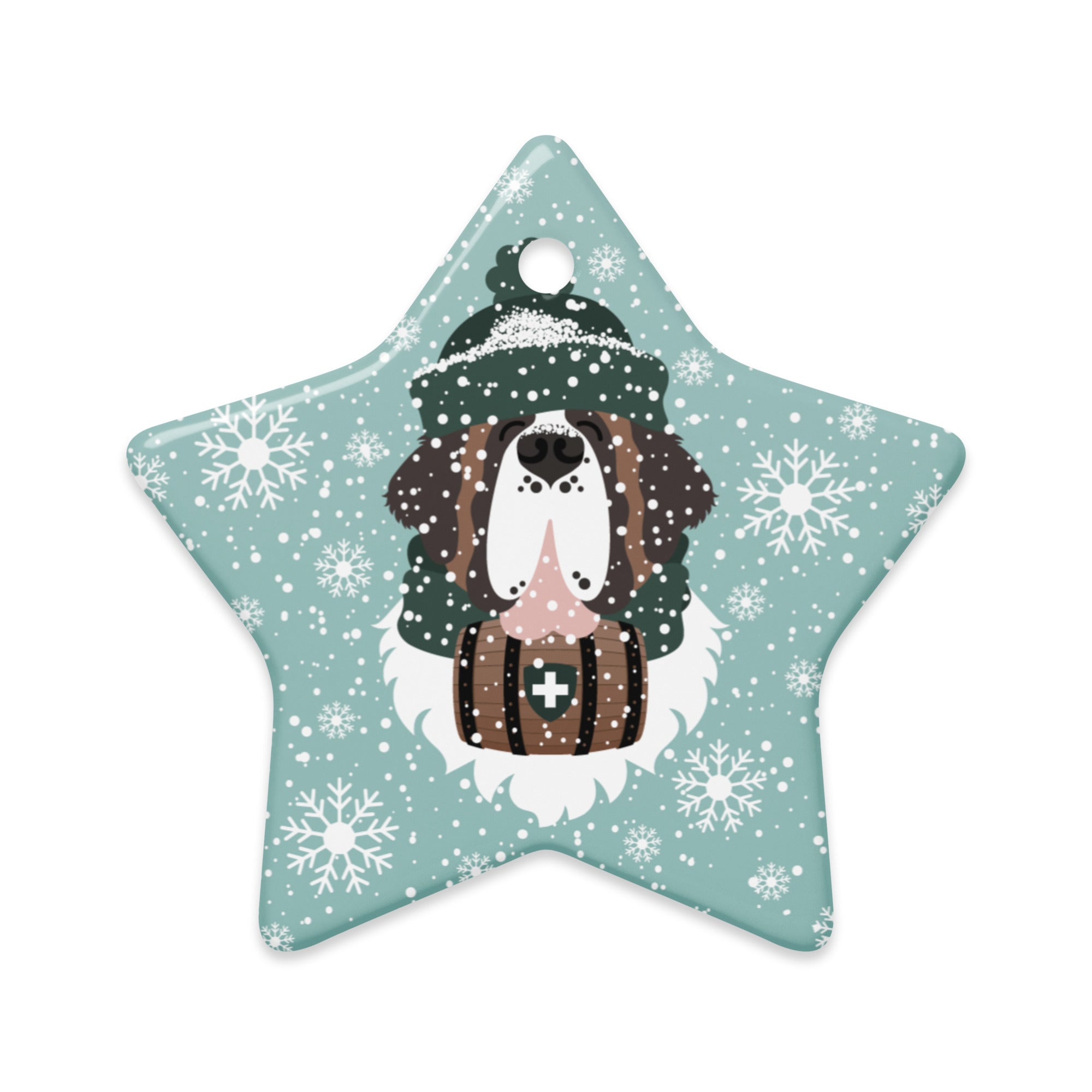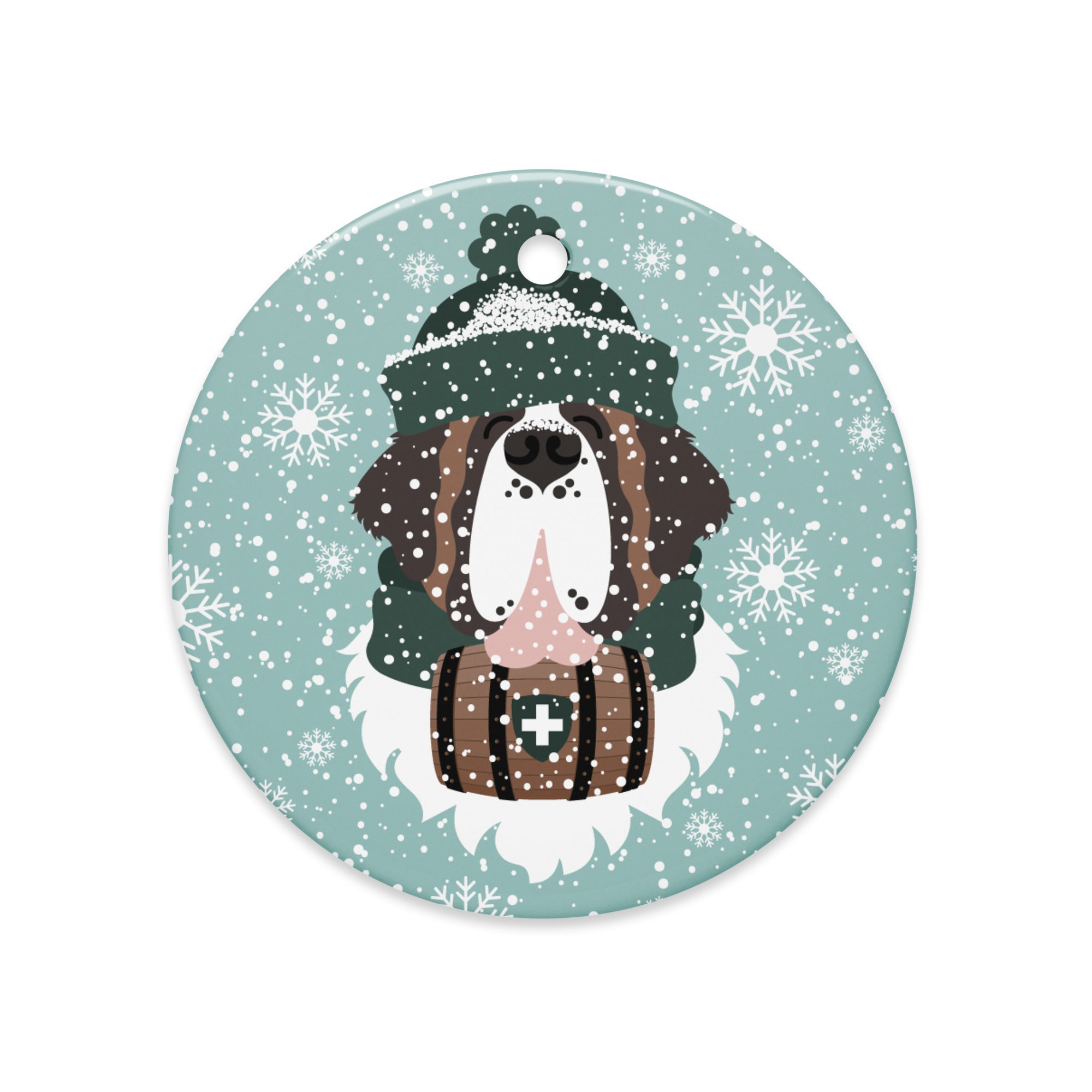 Bring home double the holiday cheer with this glossy, double-sided ceramic ornament featuring a cozy Saint Bernard in a green winter hat and scarf. Whether you’re decking your own tree or gifting a gentle-giant fan, this ornament adds instant warmth, charm, and Saint-sized spirit to any space.
