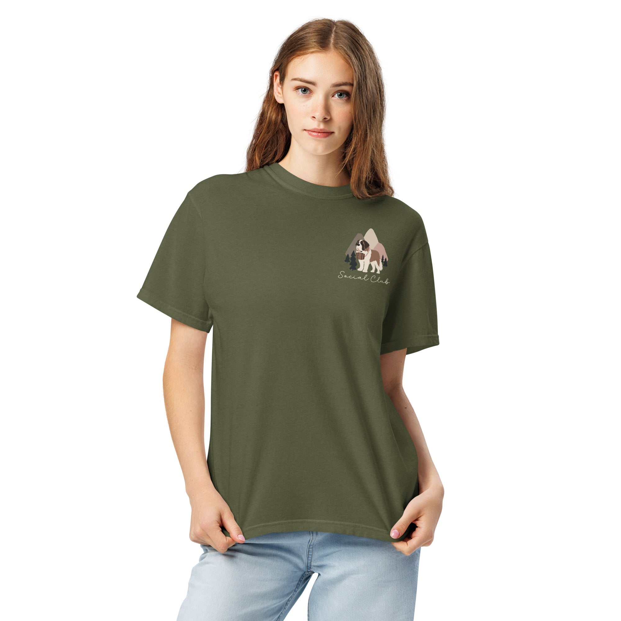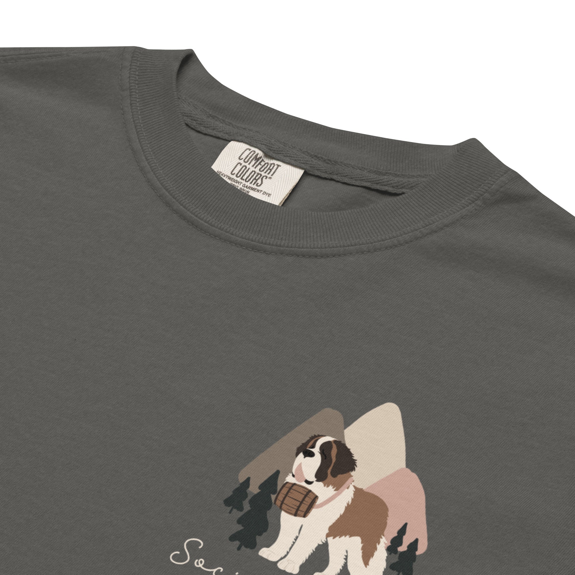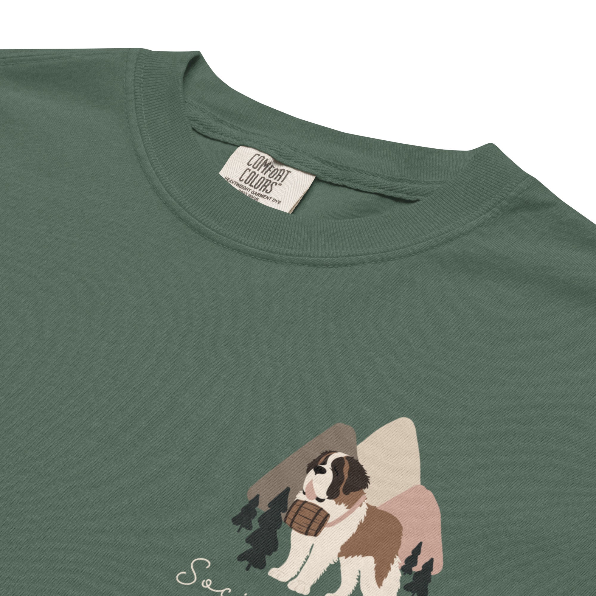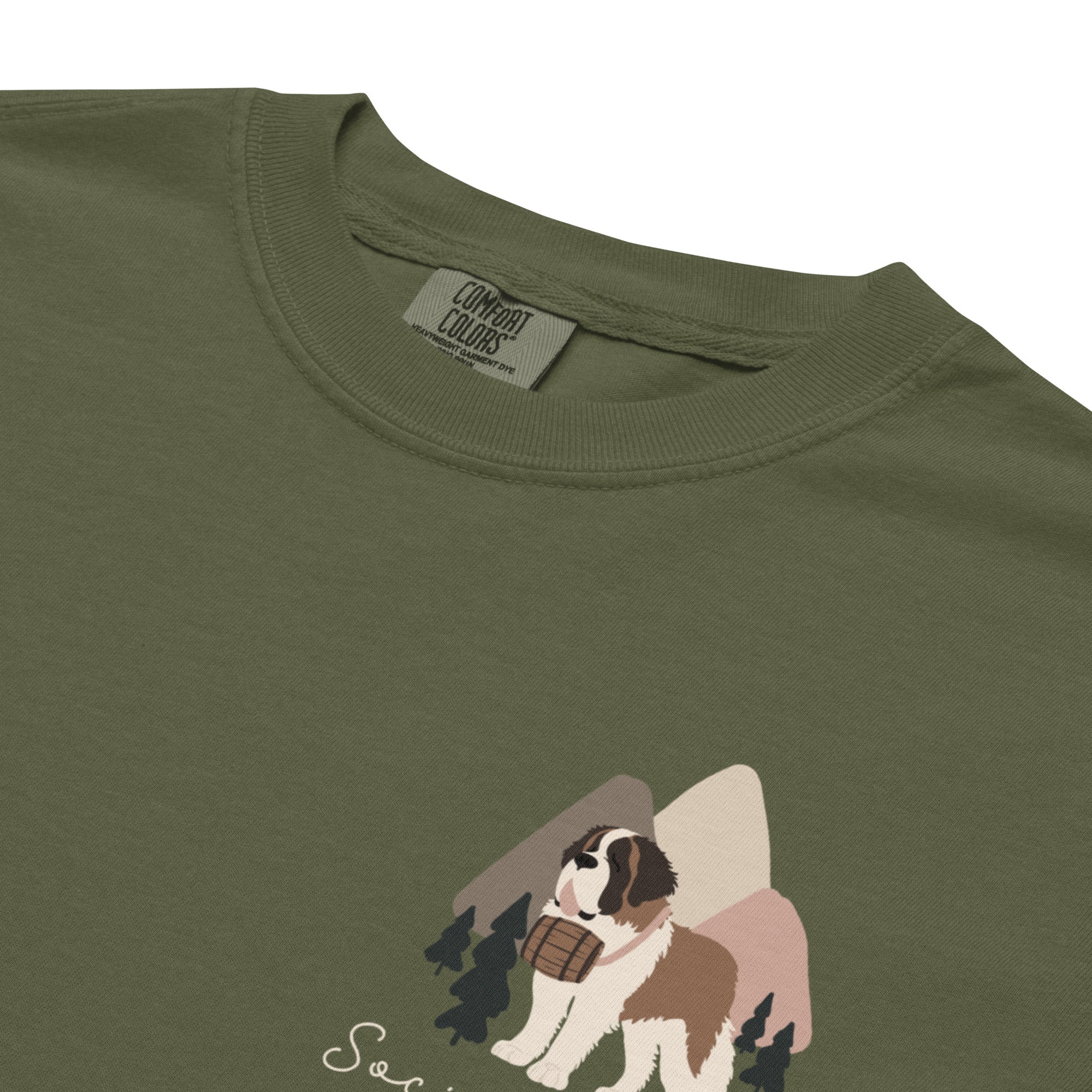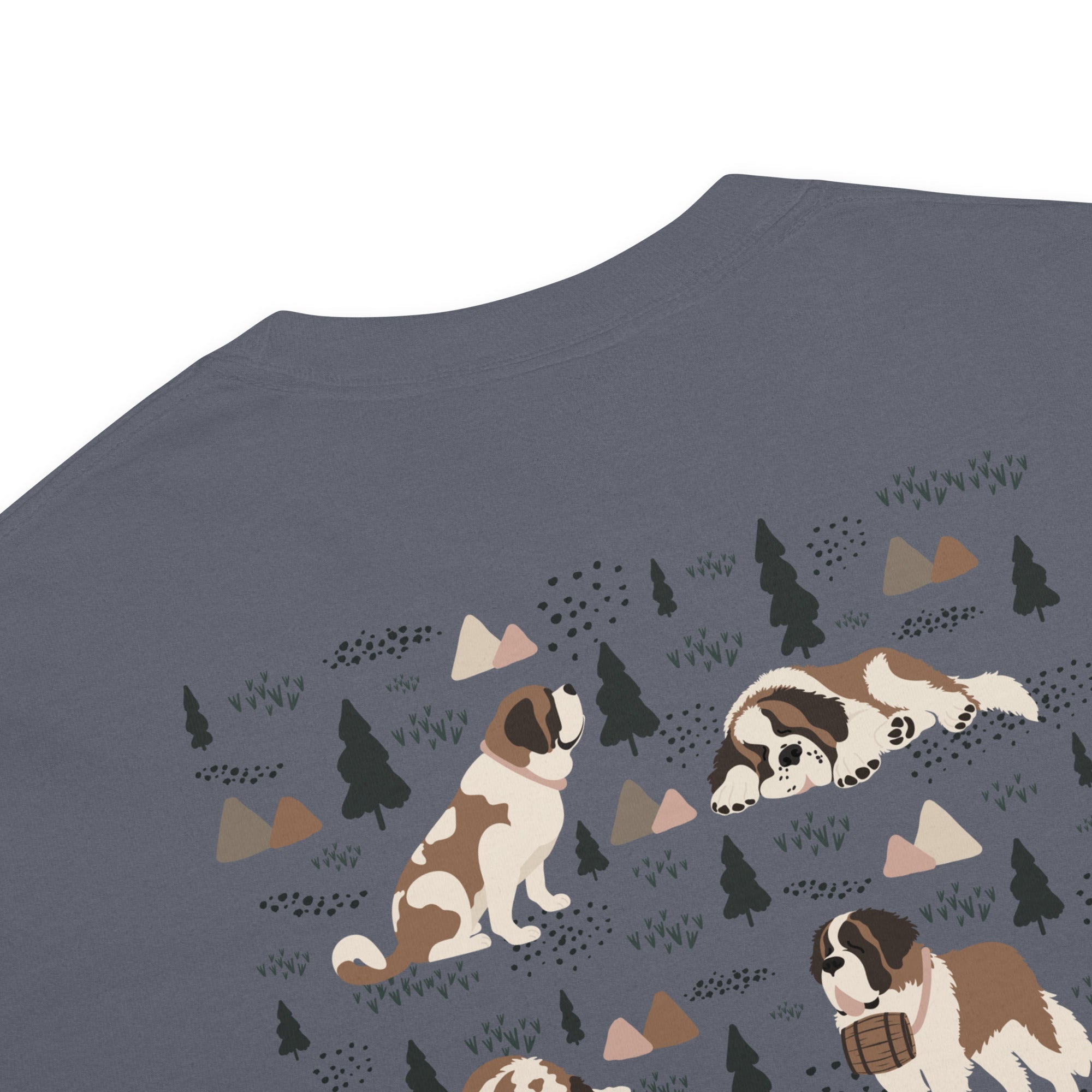 This heavyweight Comfort Colors® tee combines a structured fit with a soft, lived-in feel, thanks to garment-dyeing. Featuring a badge on the front and a charming woodland mountain Saint Bernard design on the back, it’s the perfect gift for big dog lovers and anyone who appreciates cozy, timeless style.