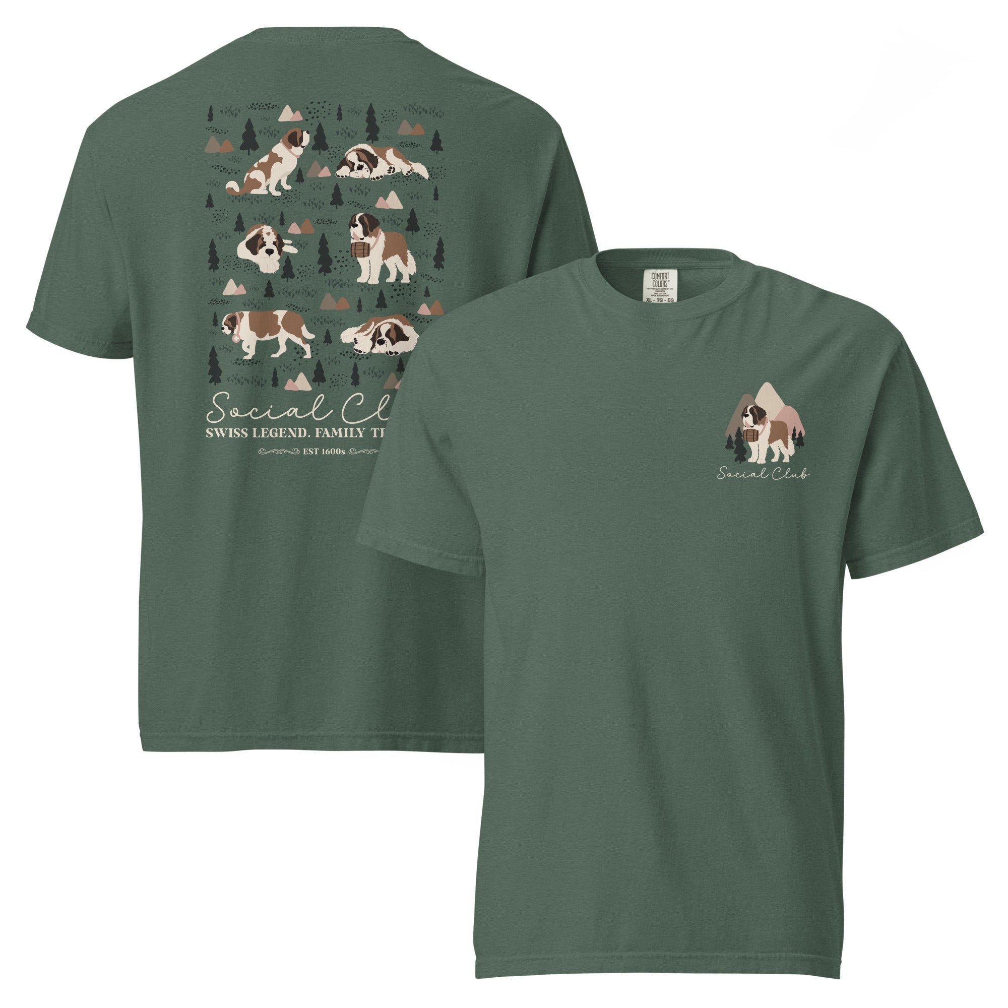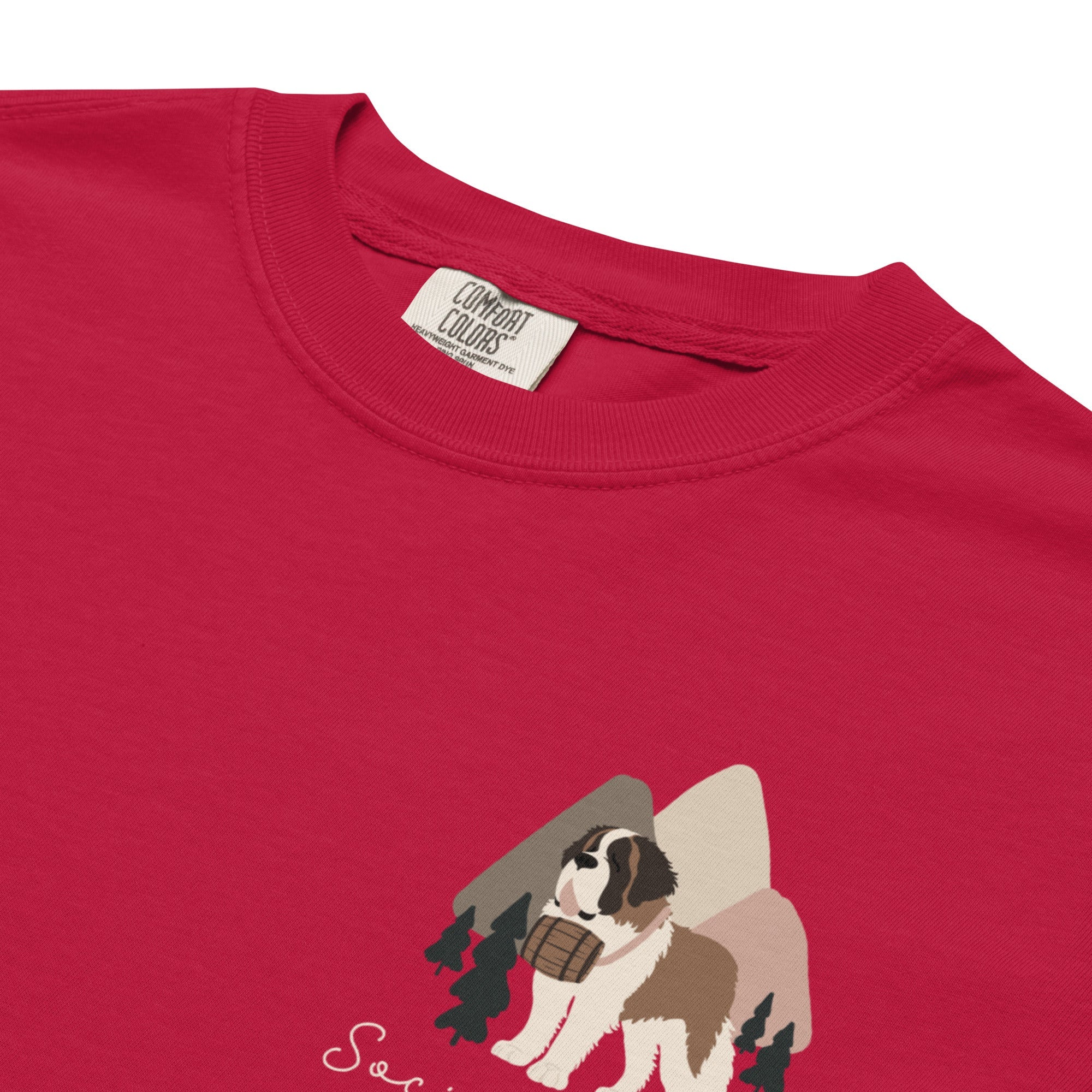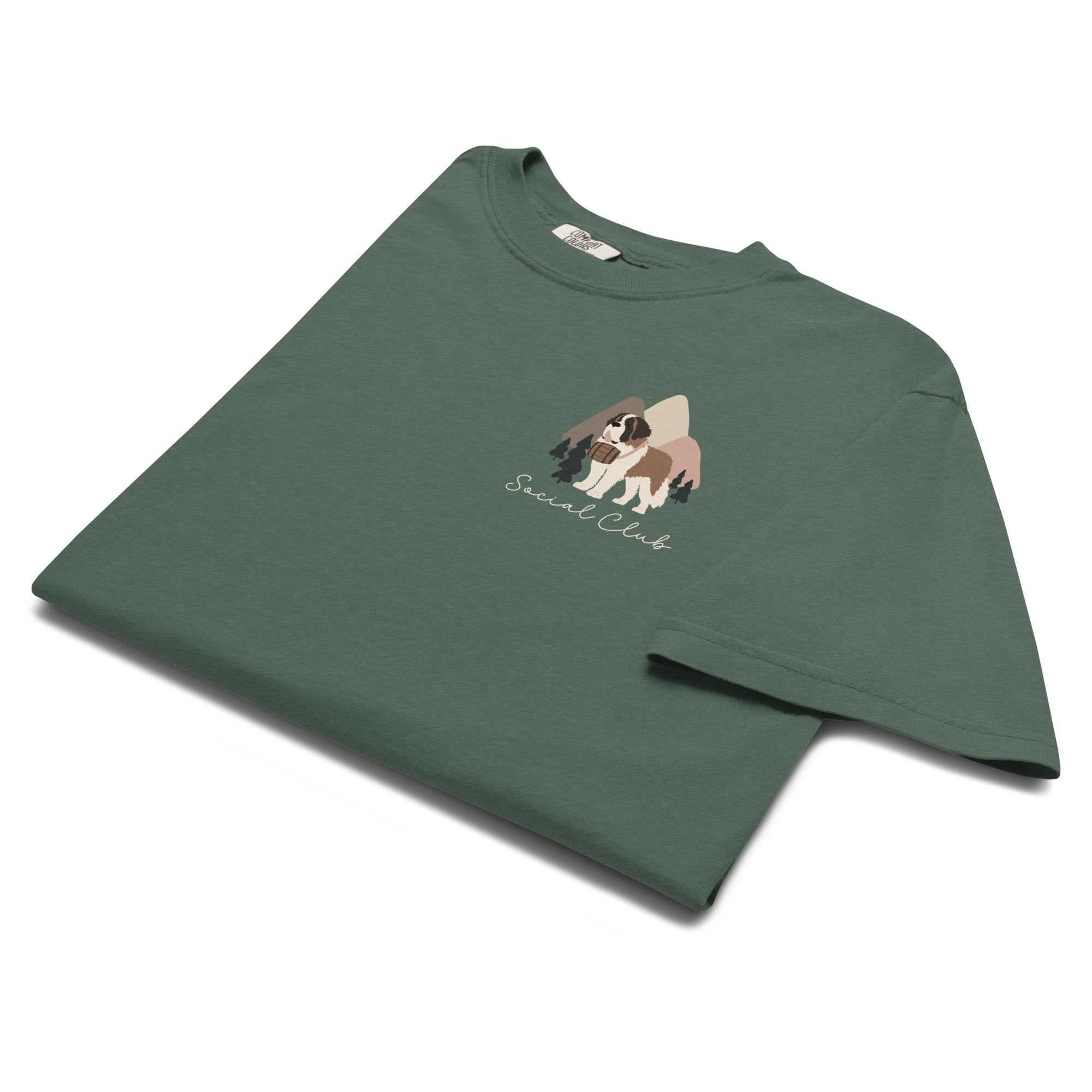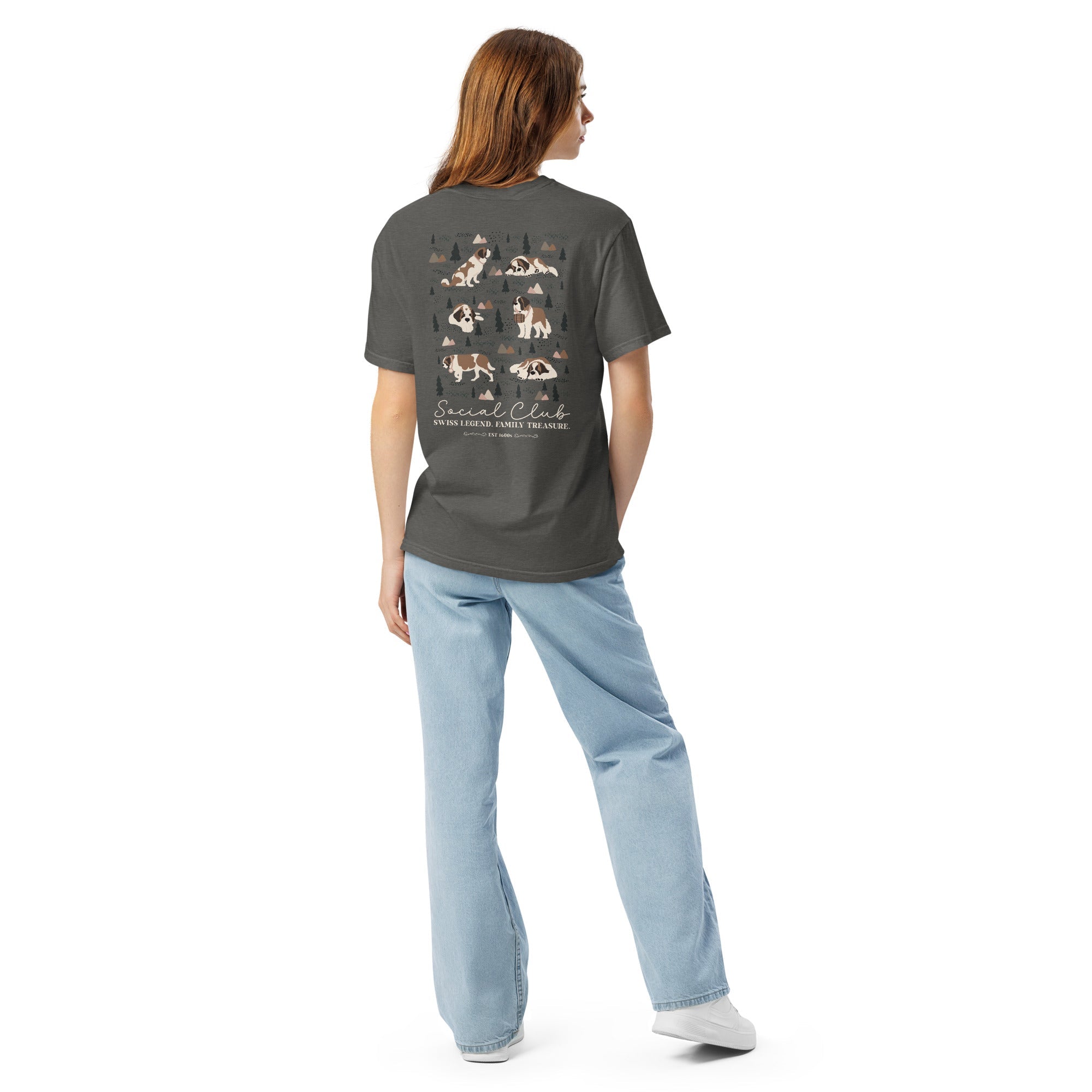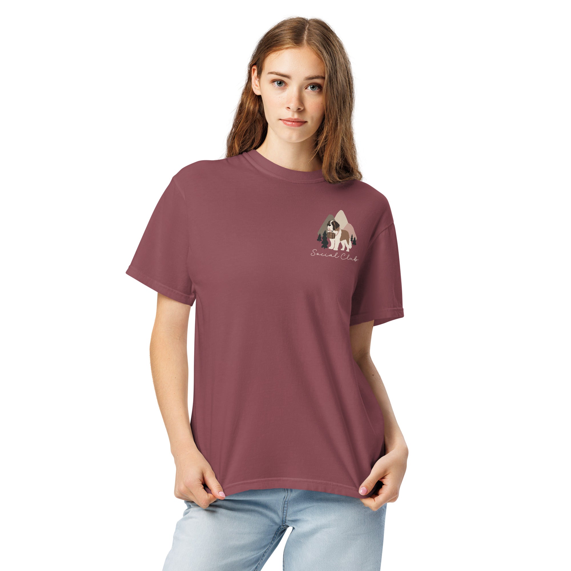 This heavyweight Comfort Colors® tee combines a structured fit with a soft, lived-in feel, thanks to garment-dyeing. Featuring a badge on the front and a charming woodland mountain Saint Bernard design on the back, it’s the perfect gift for big dog lovers and anyone who appreciates cozy, timeless style.