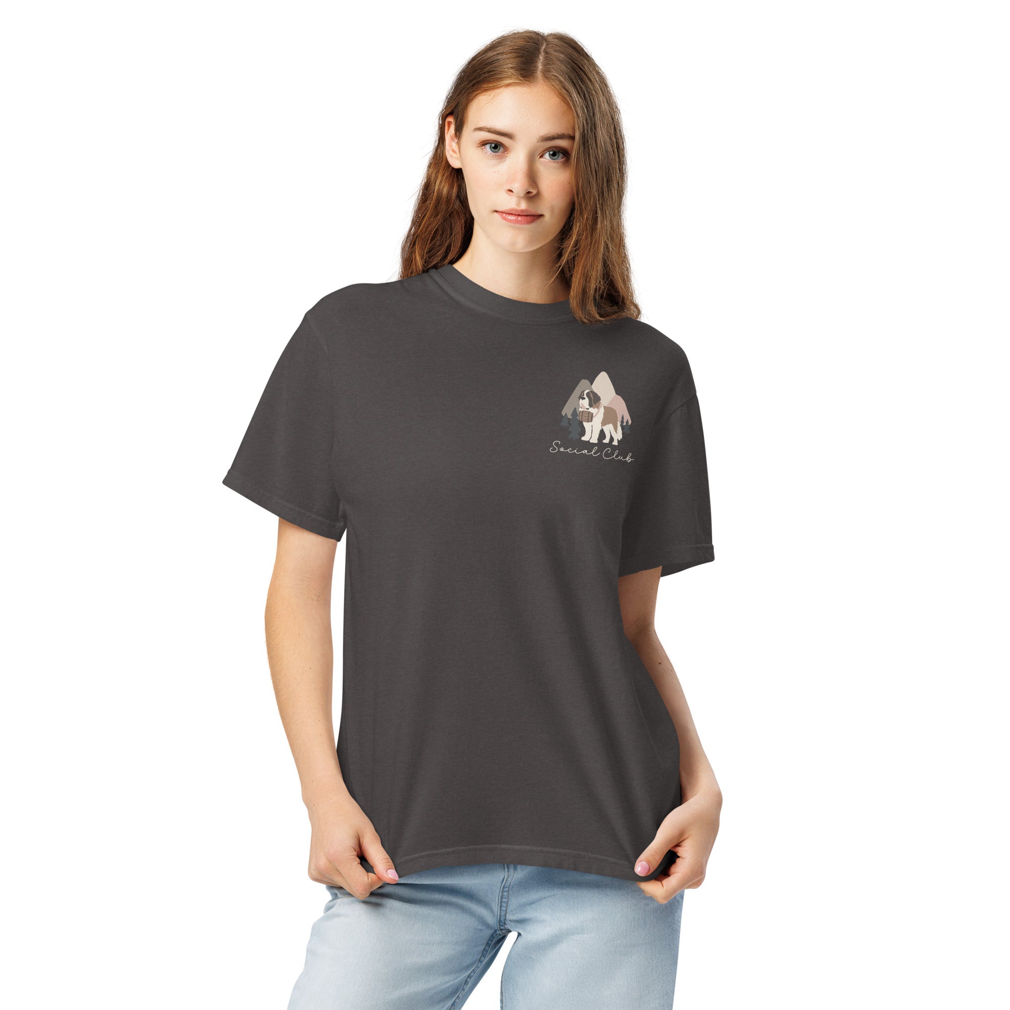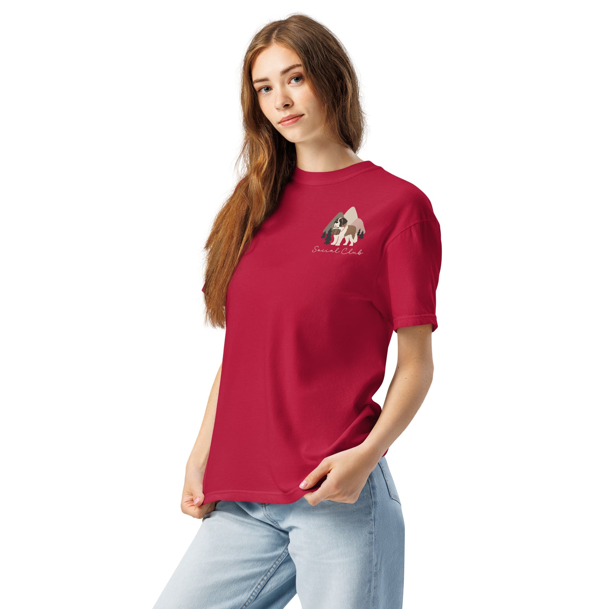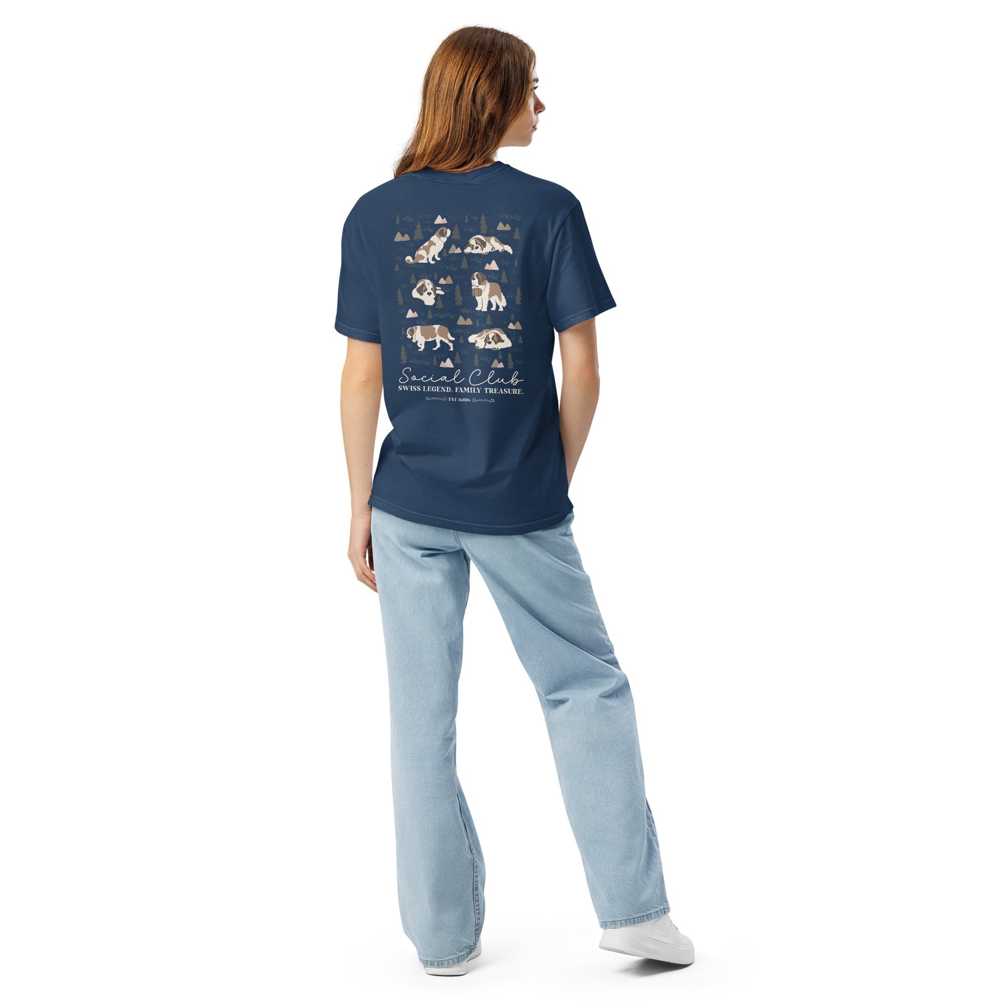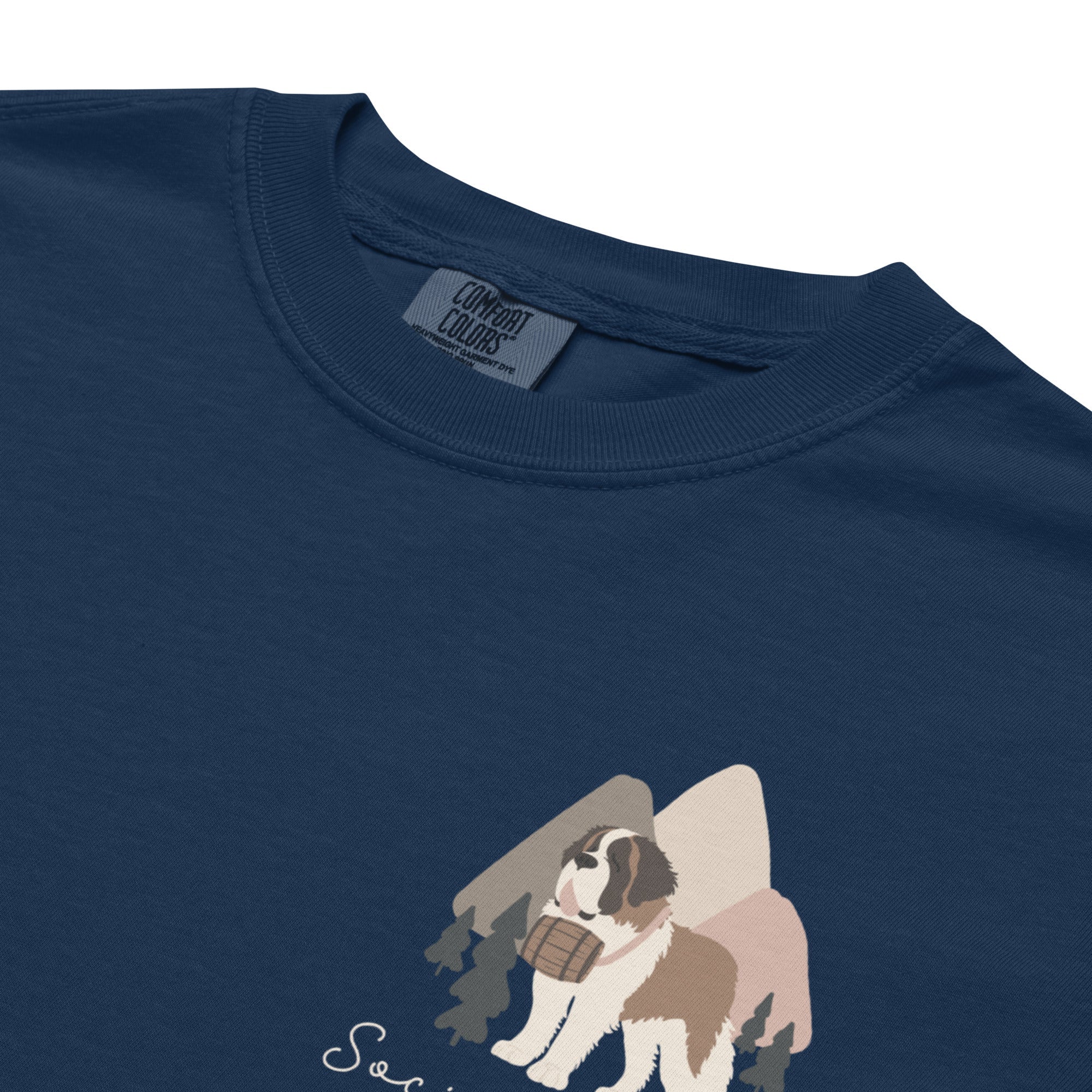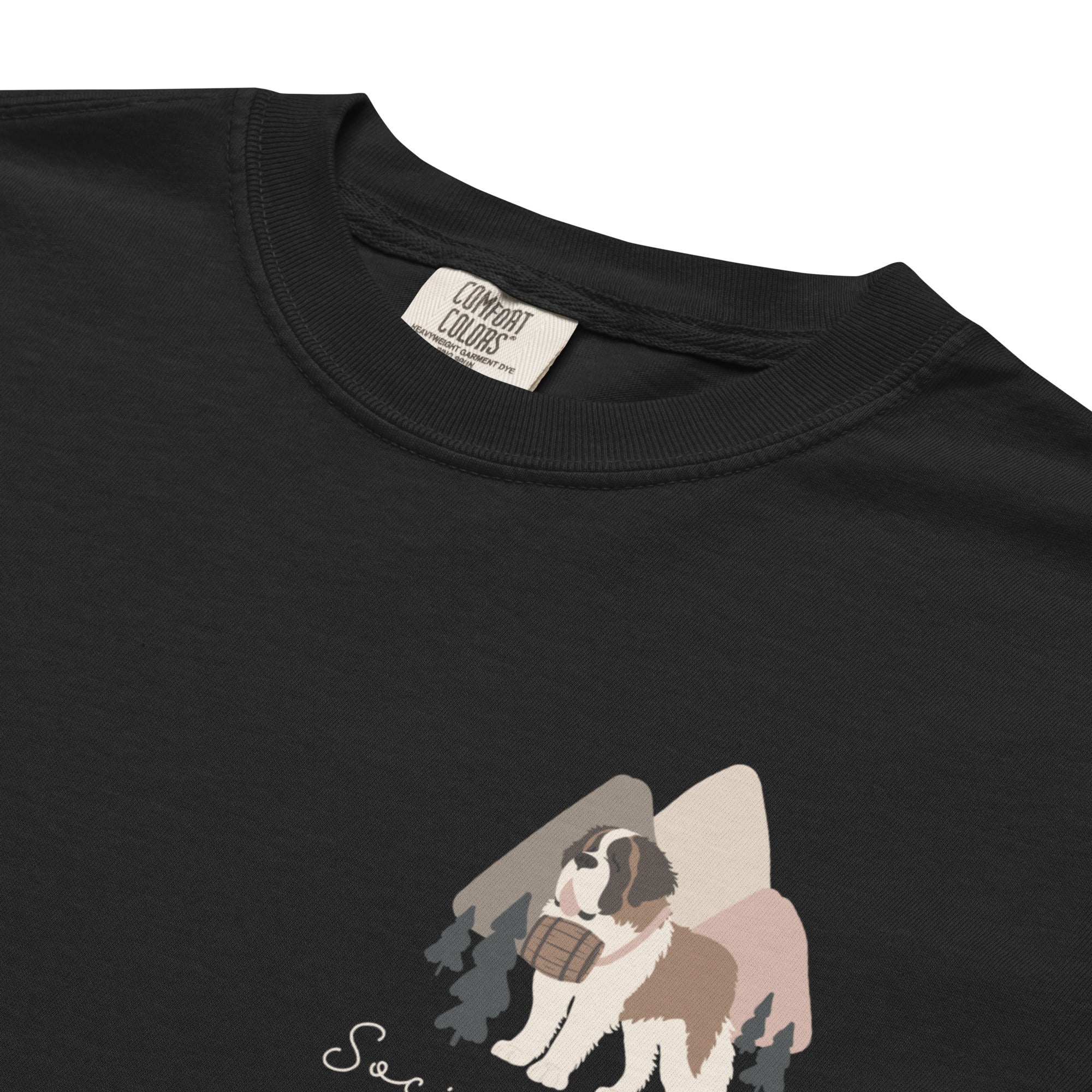 This heavyweight Comfort Colors® tee combines a structured fit with a soft, lived-in feel, thanks to garment-dyeing. Featuring a badge on the front and a charming woodland mountain Saint Bernard design on the back, it’s the perfect gift for big dog lovers and anyone who appreciates cozy, timeless style.