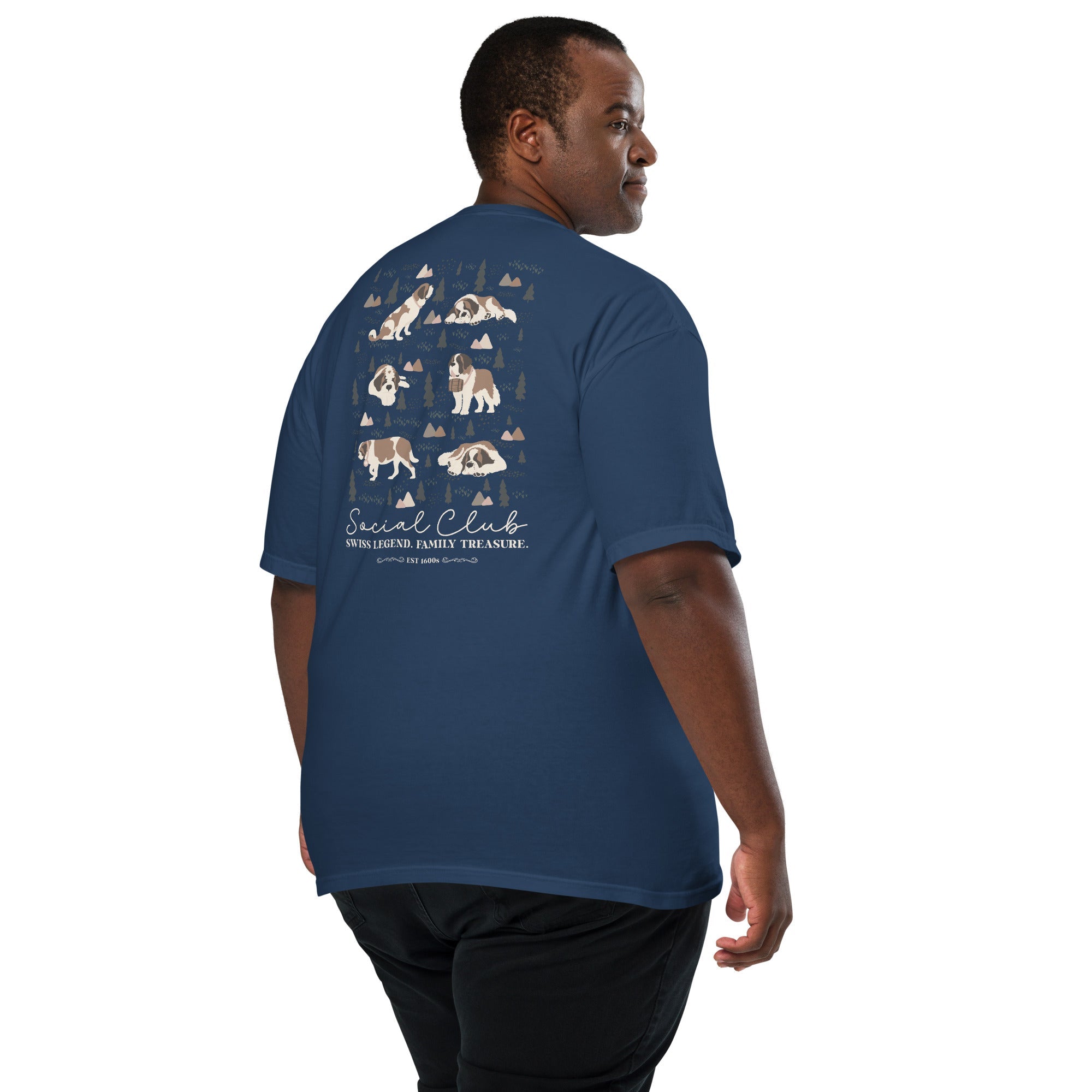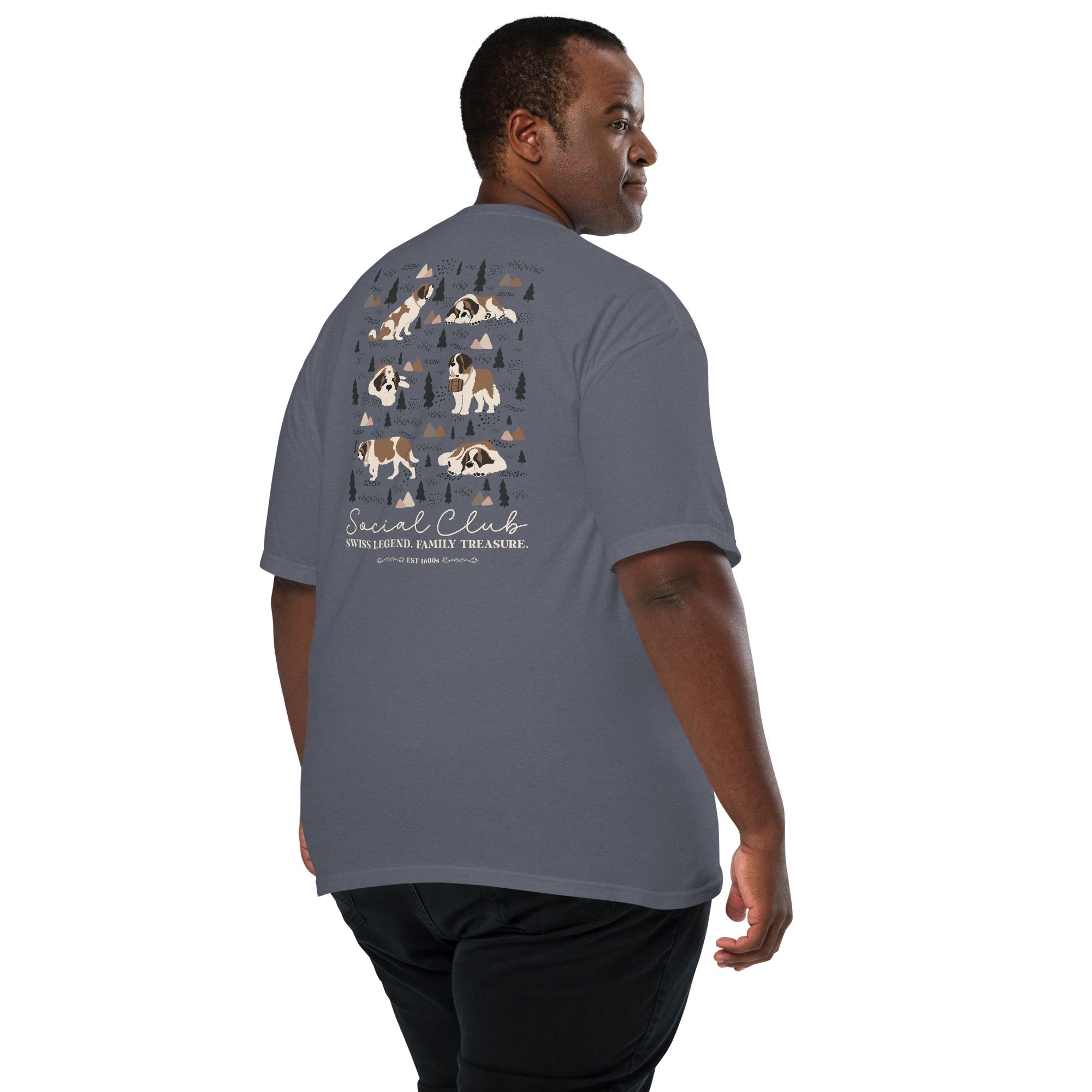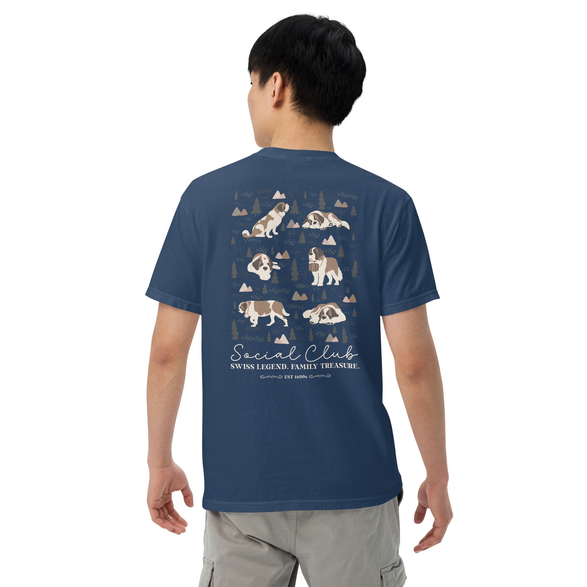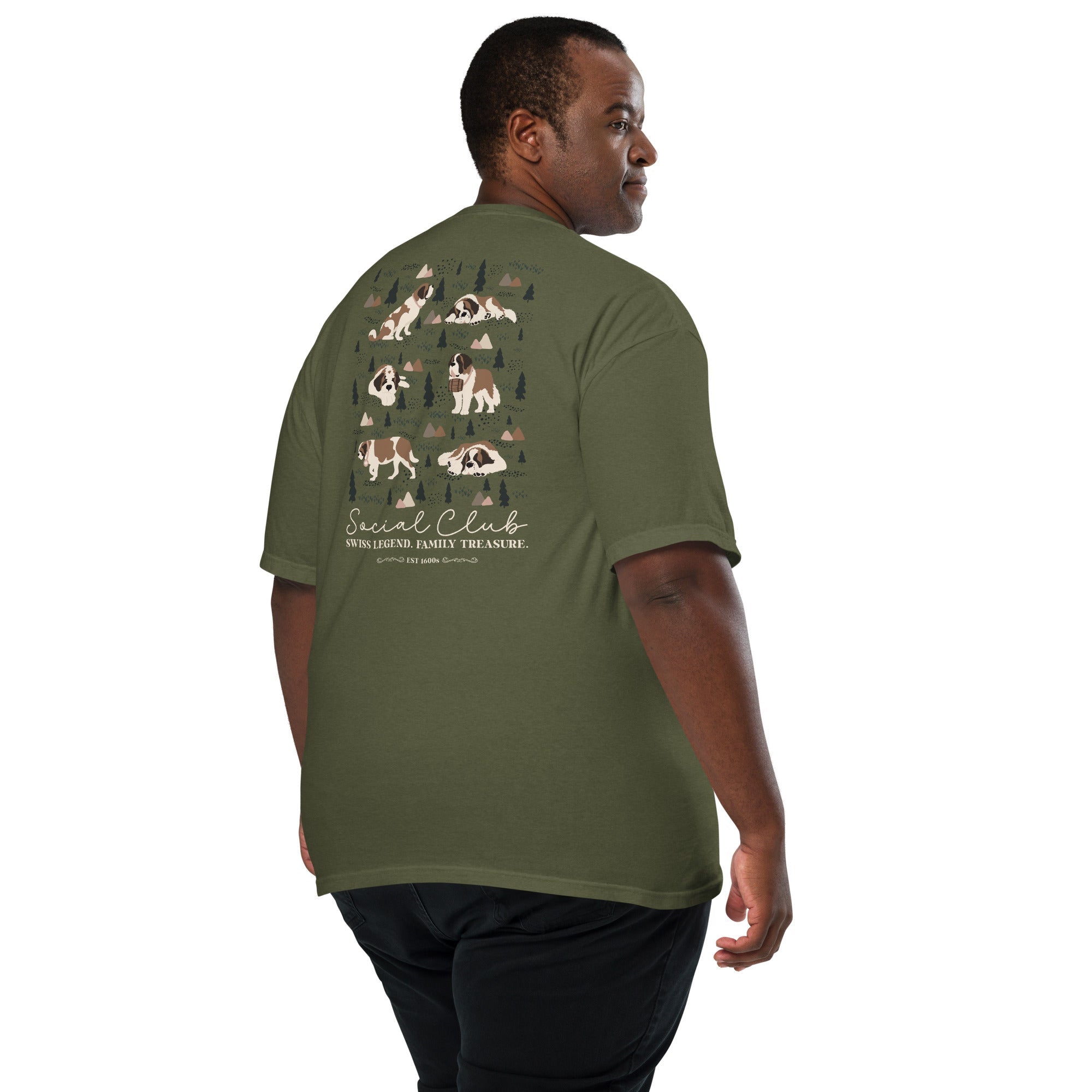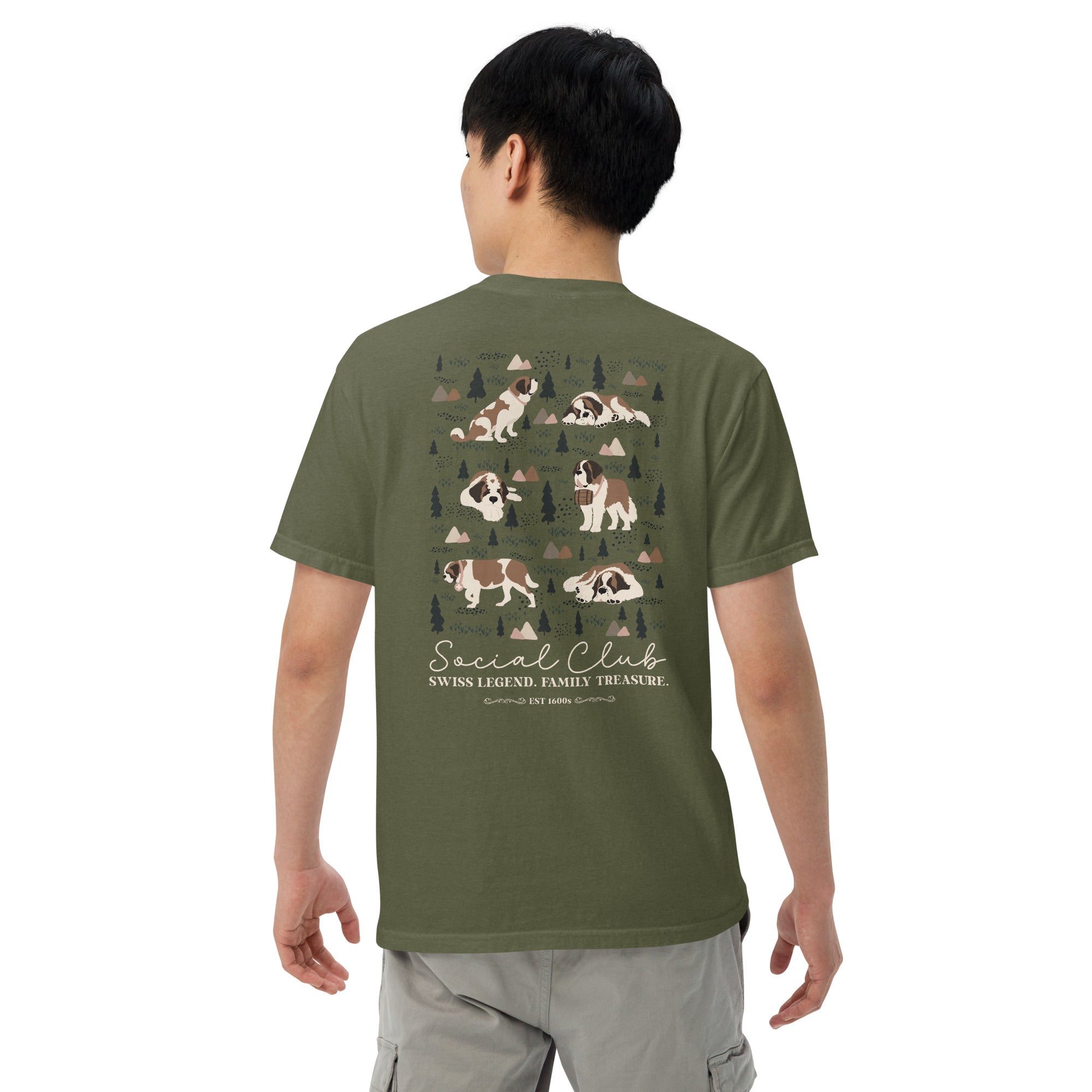 This heavyweight Comfort Colors® tee combines a structured fit with a soft, lived-in feel, thanks to garment-dyeing. Featuring a badge on the front and a charming woodland mountain Saint Bernard design on the back, it’s the perfect gift for big dog lovers and anyone who appreciates cozy, timeless style.