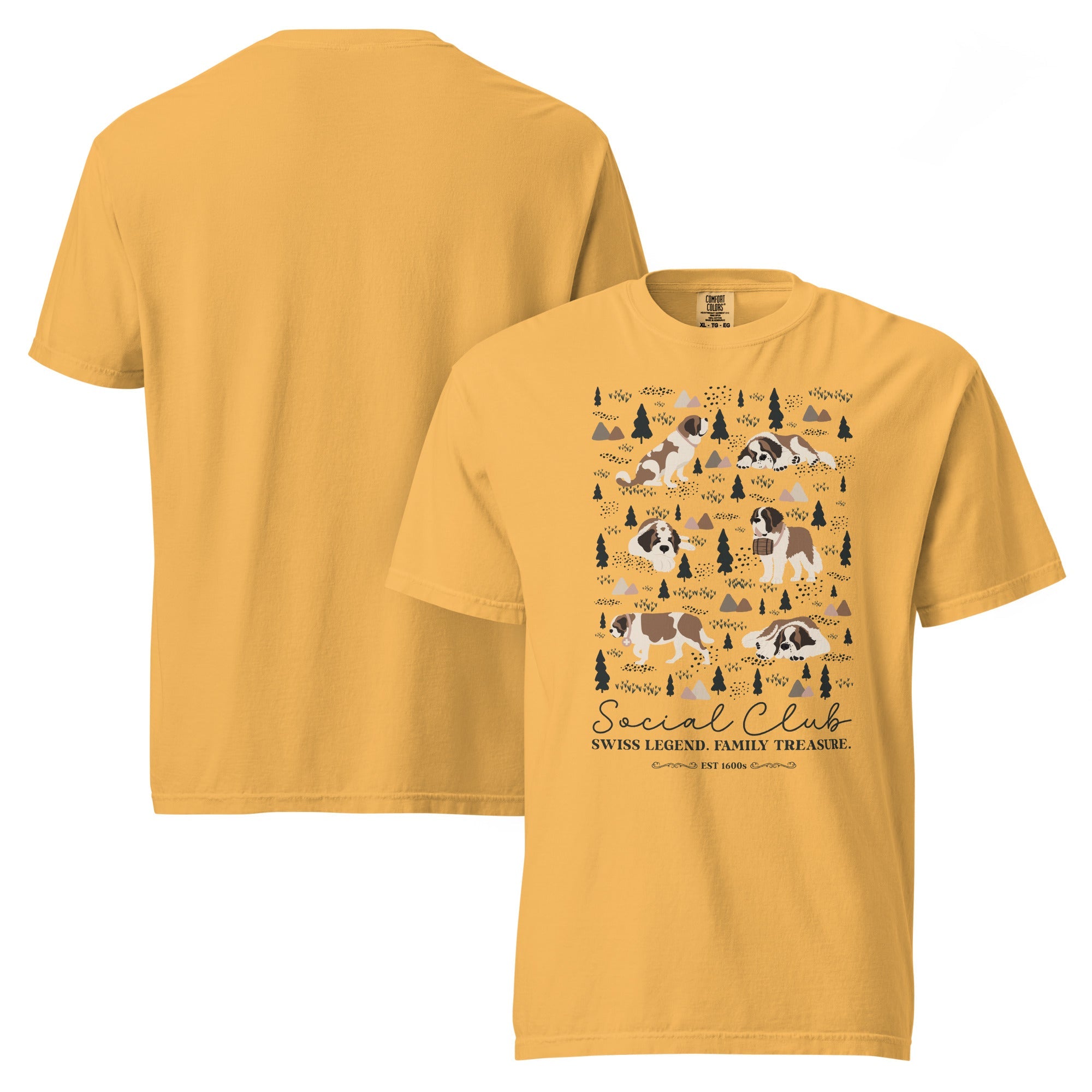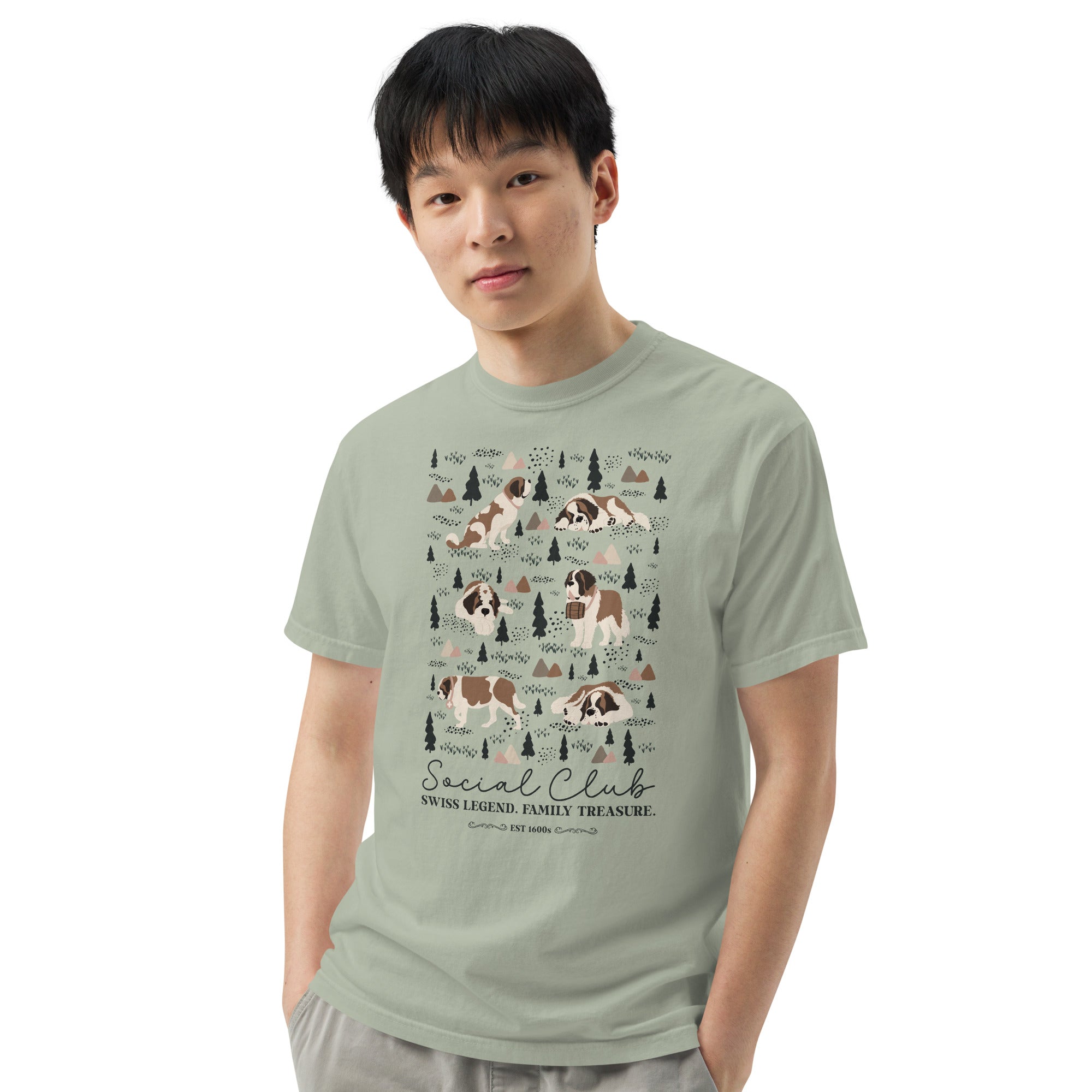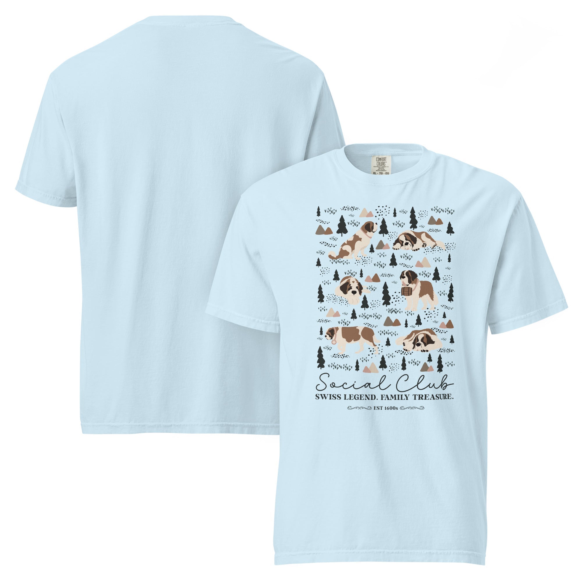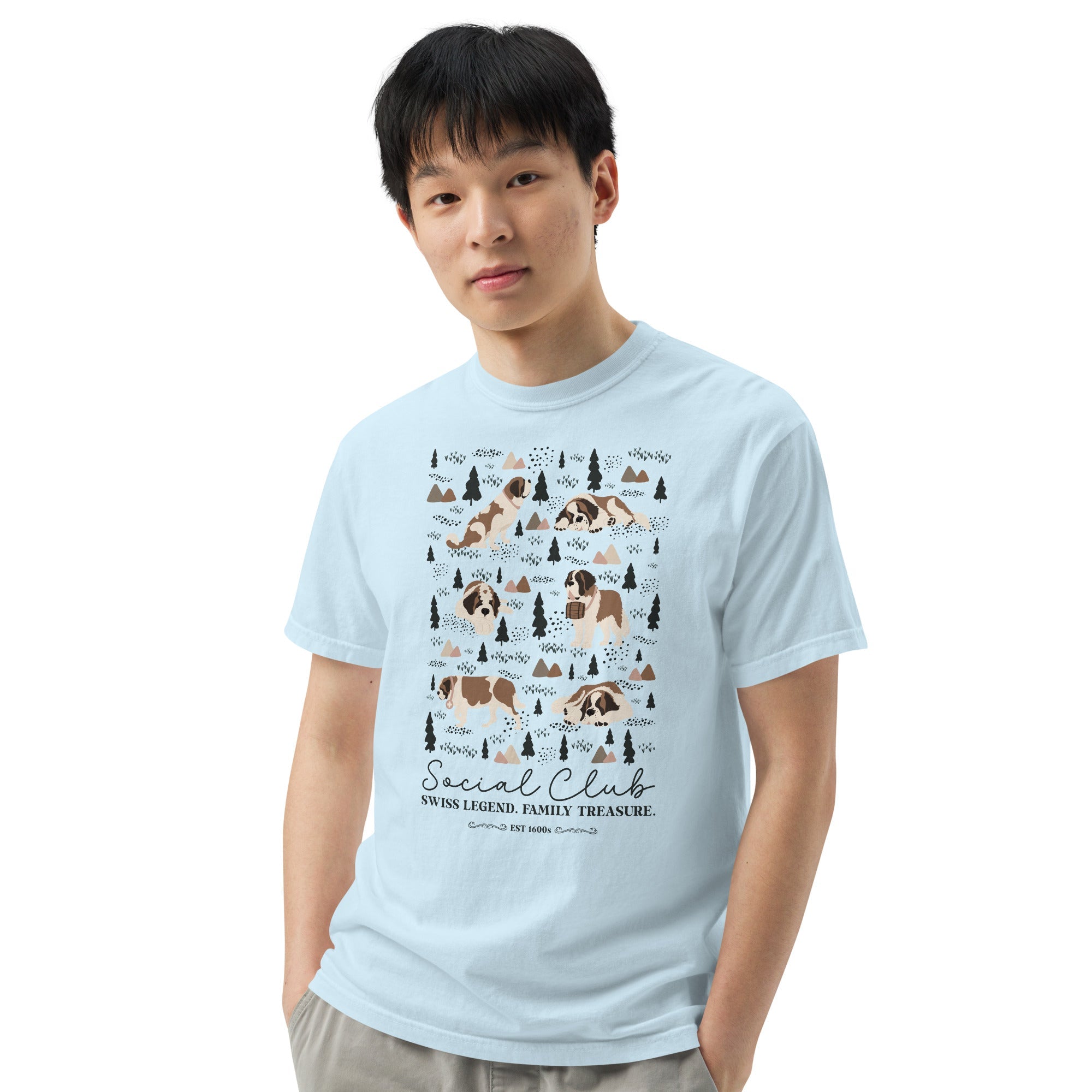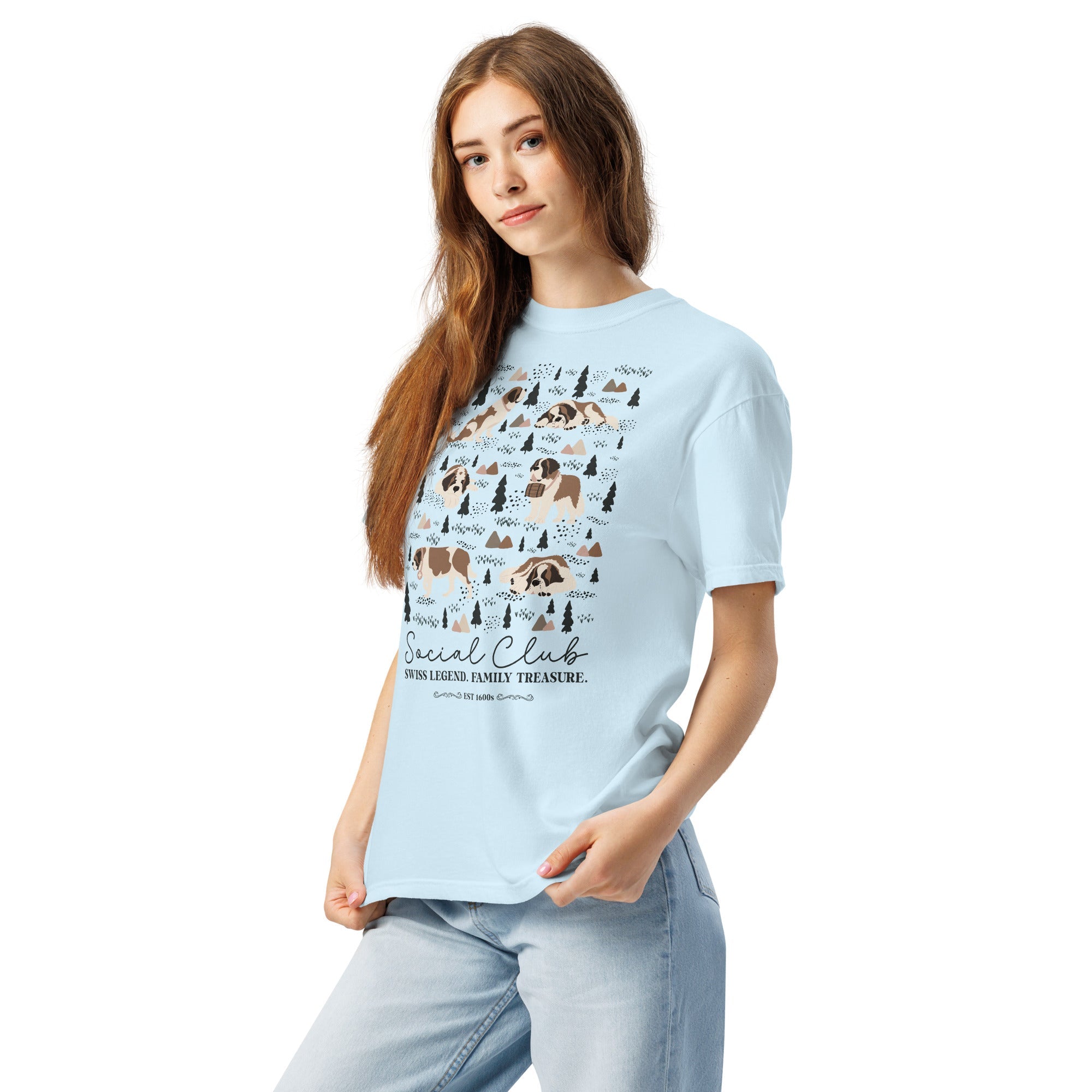 This heavyweight Comfort Colors® tee combines a structured fit with a soft, lived-in feel, thanks to garment-dyeing. Featuring a charming woodland, mountain and Saint Bernard design on the back, it’s the perfect gift for St Bernard dog lovers and anyone who appreciates cozy, timeless style.