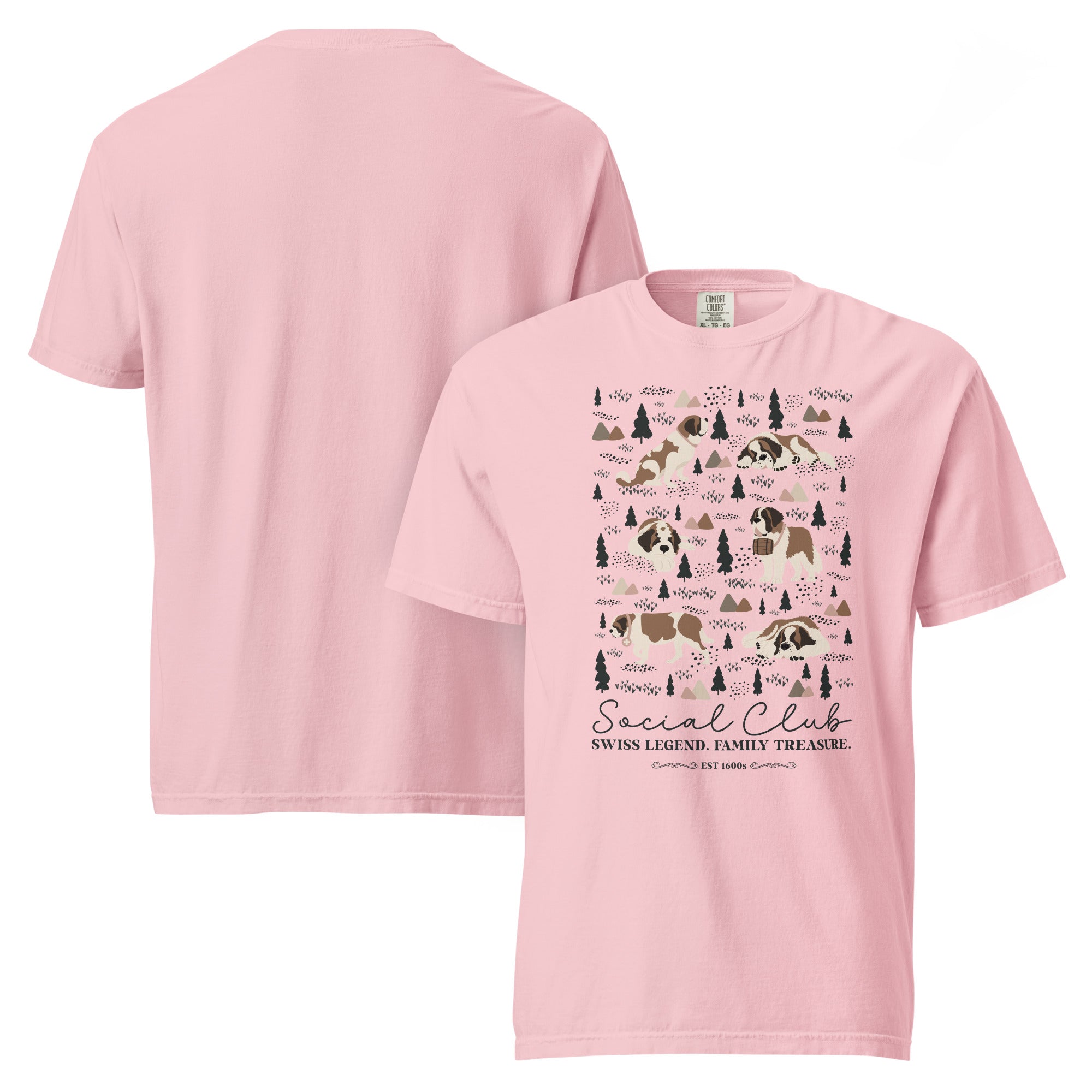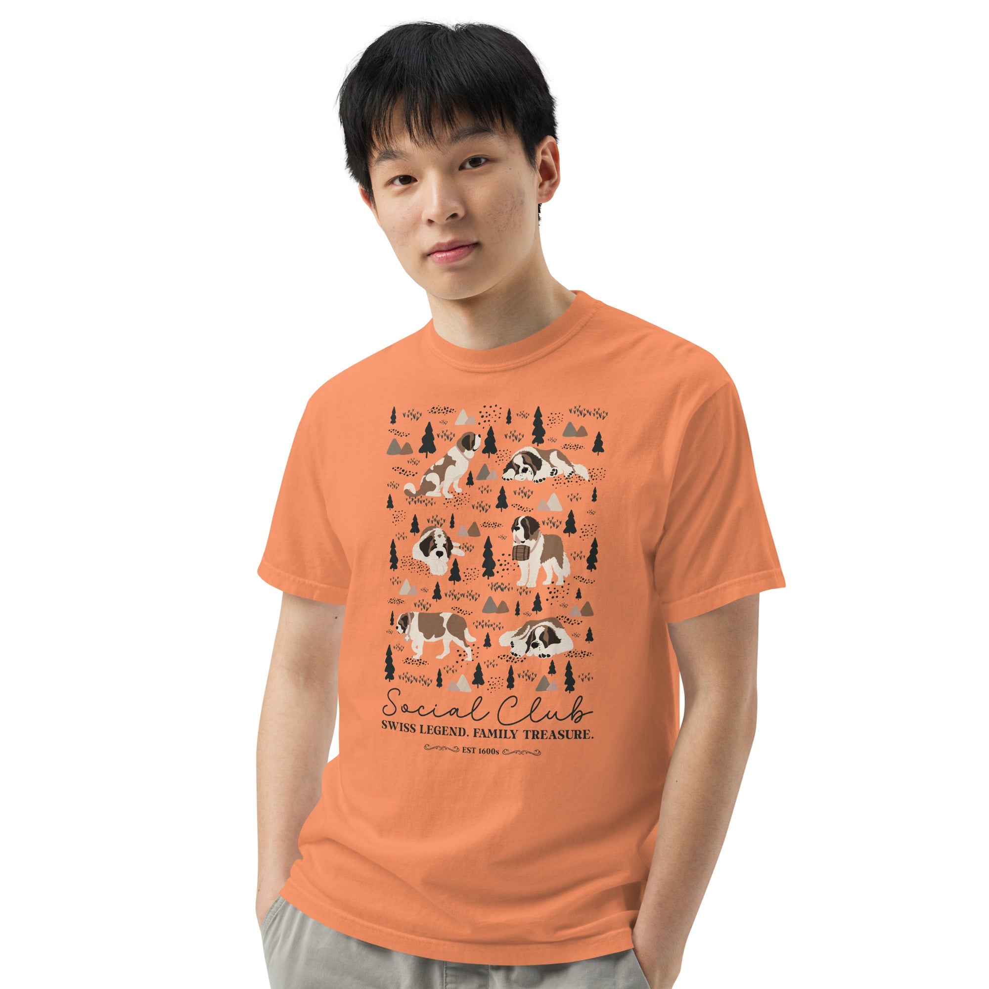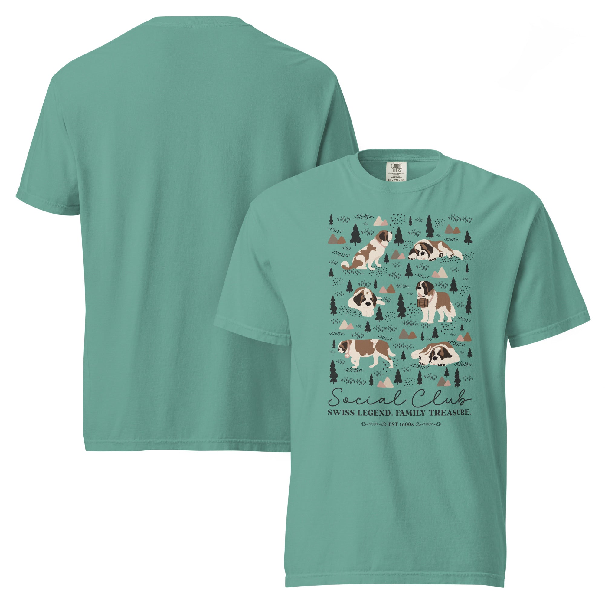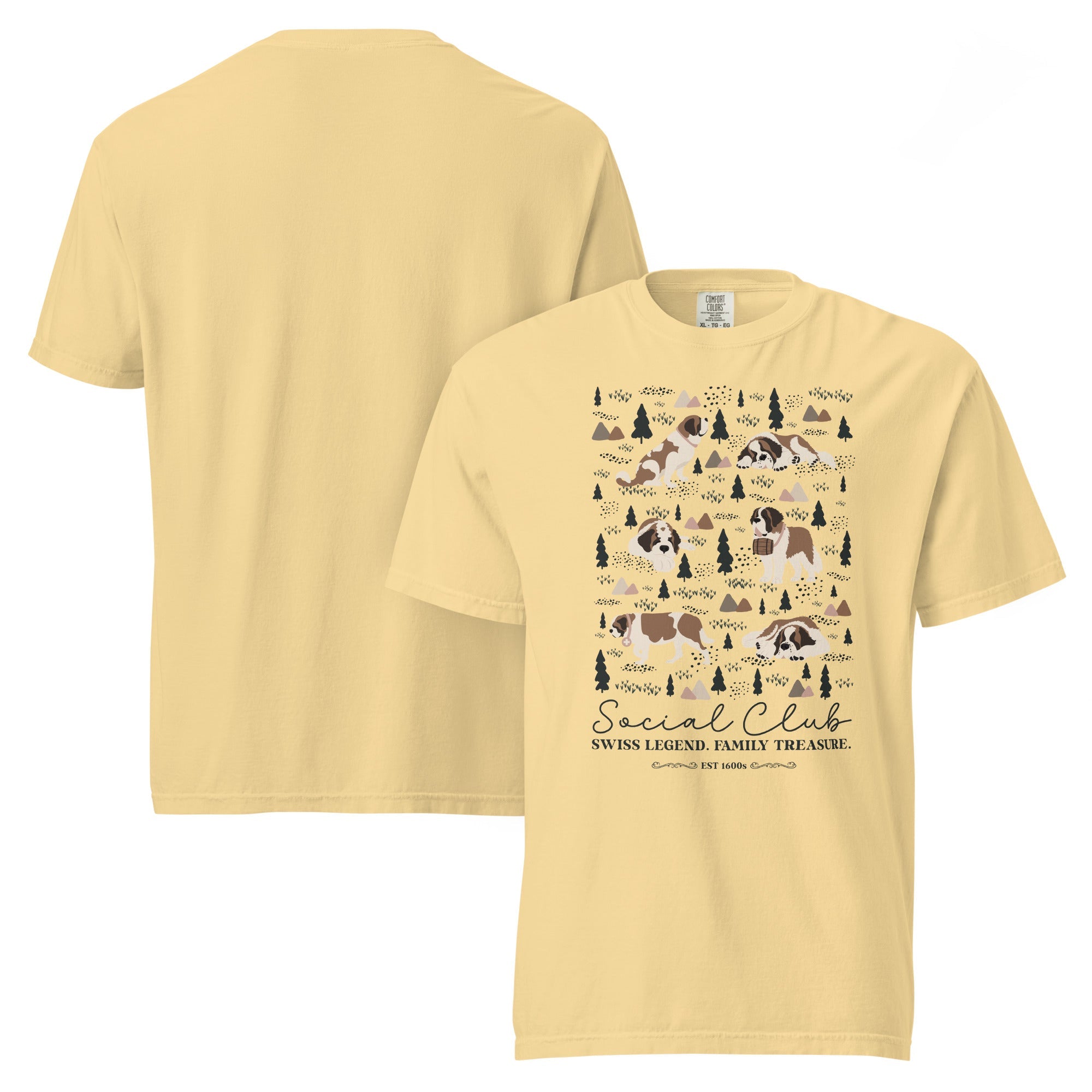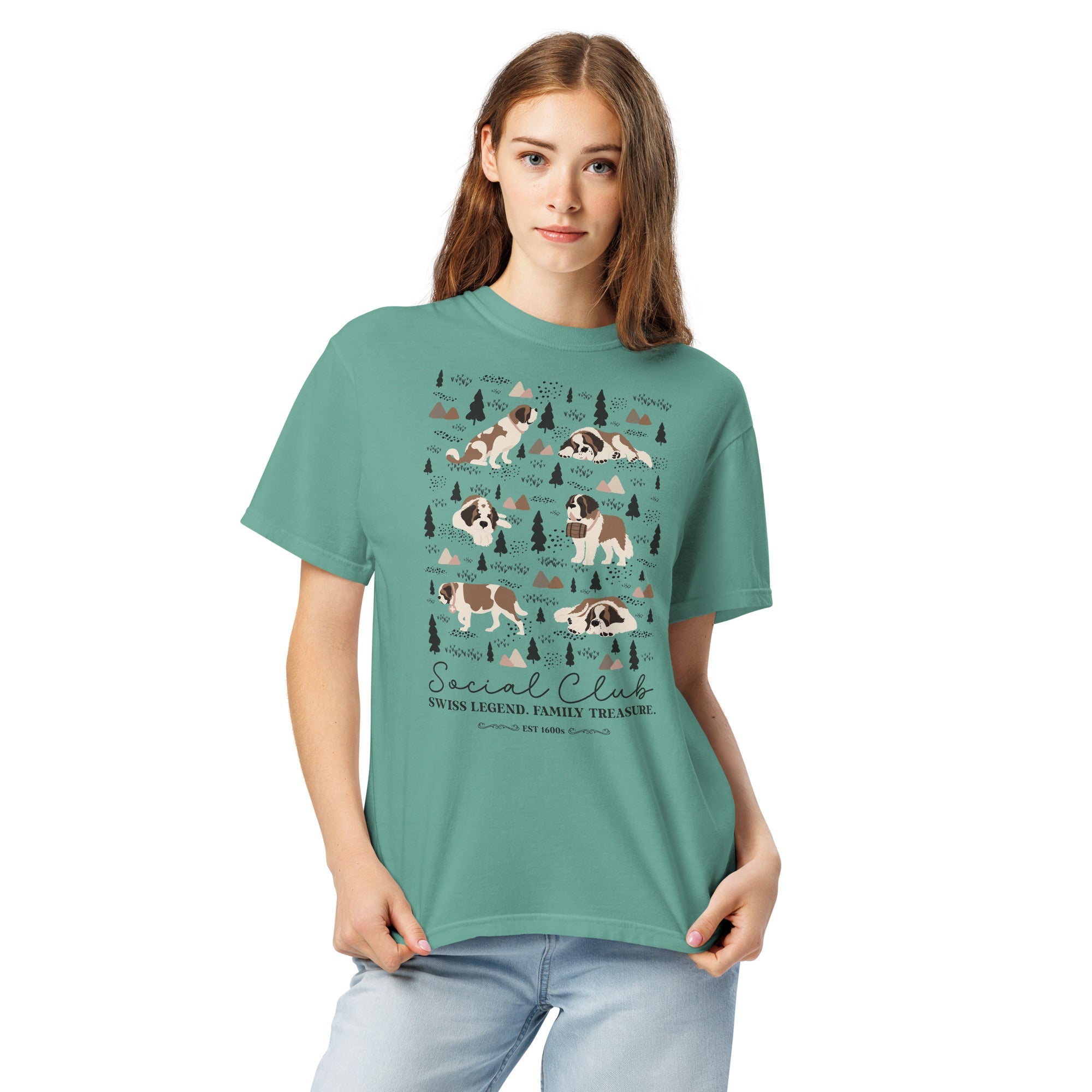 This heavyweight Comfort Colors® tee combines a structured fit with a soft, lived-in feel, thanks to garment-dyeing. Featuring a charming woodland, mountain and Saint Bernard design on the back, it’s the perfect gift for St Bernard dog lovers and anyone who appreciates cozy, timeless style.
