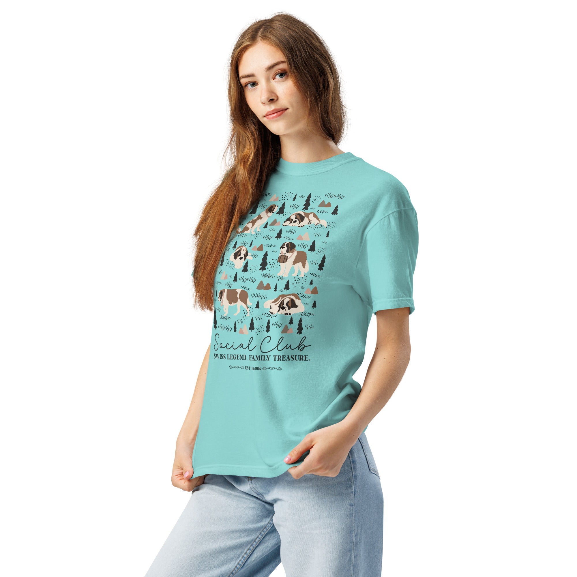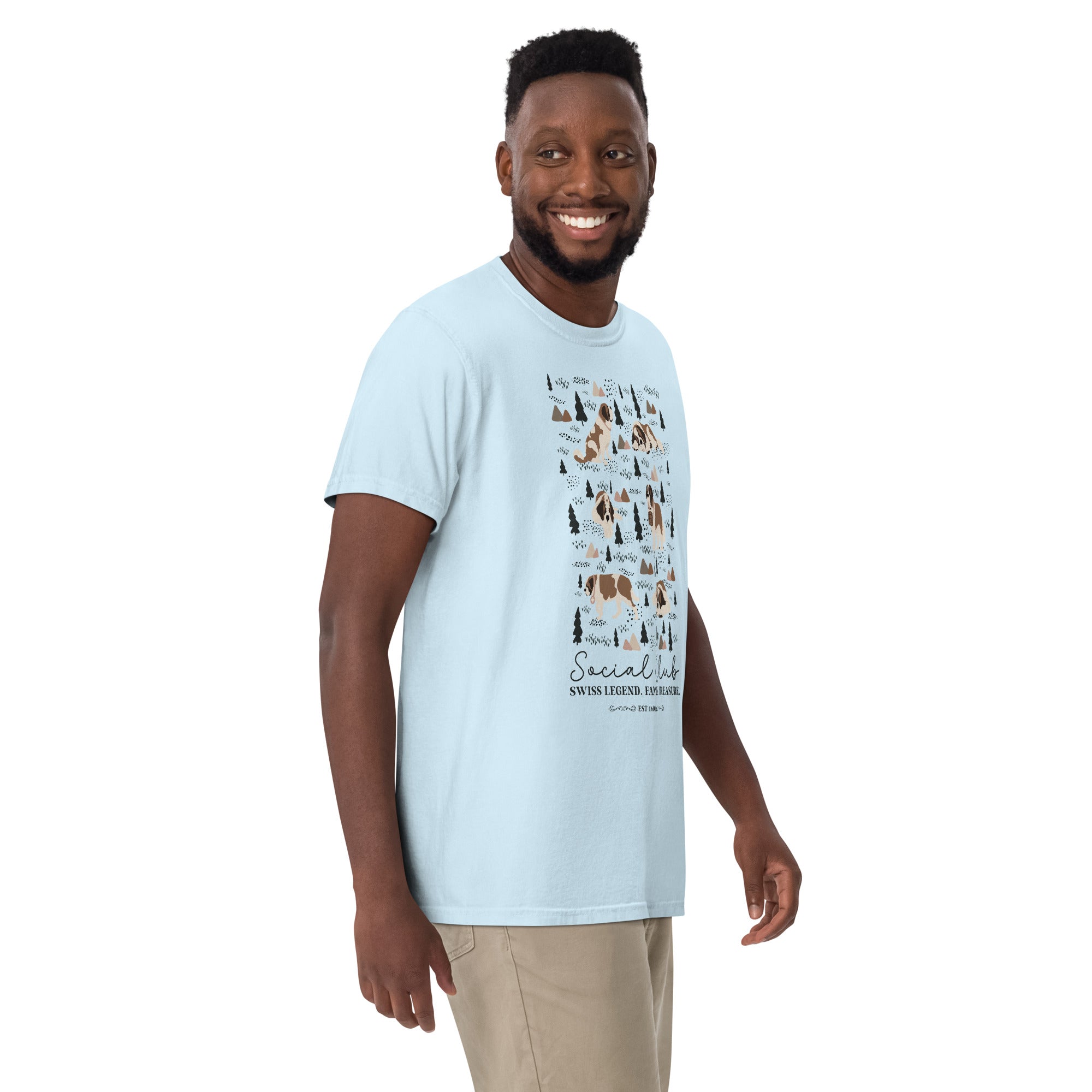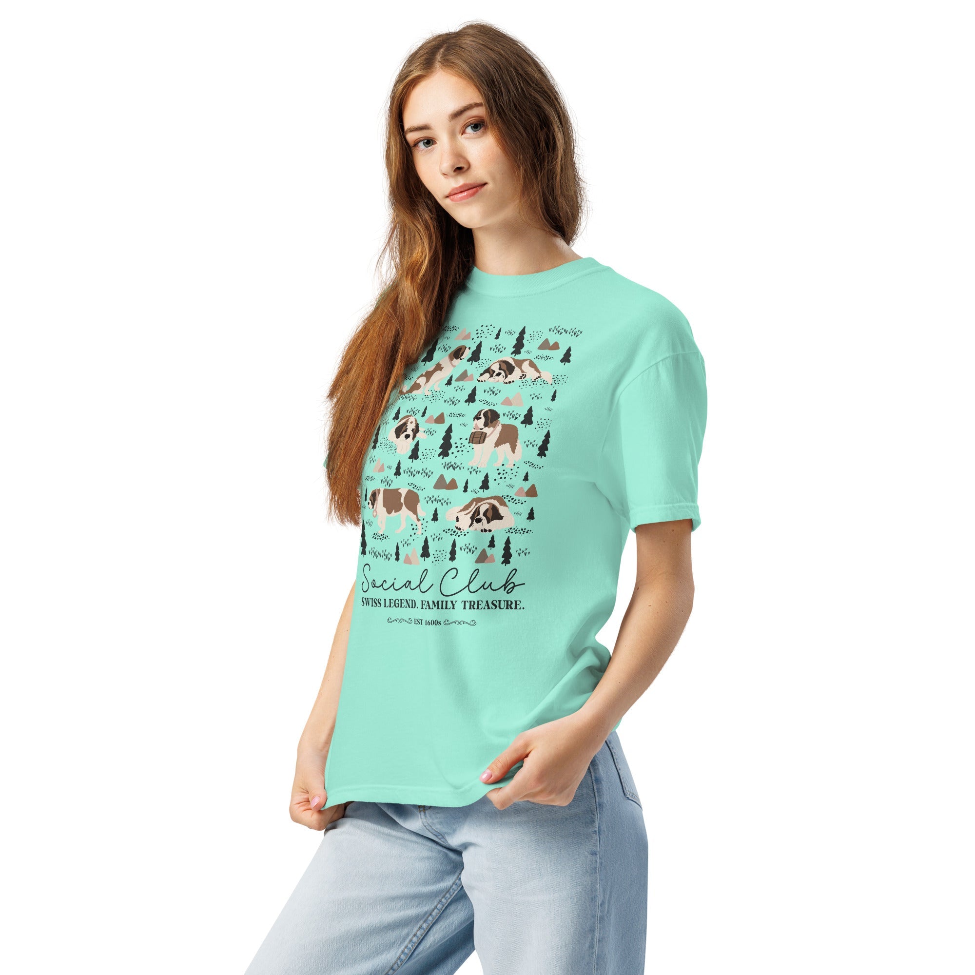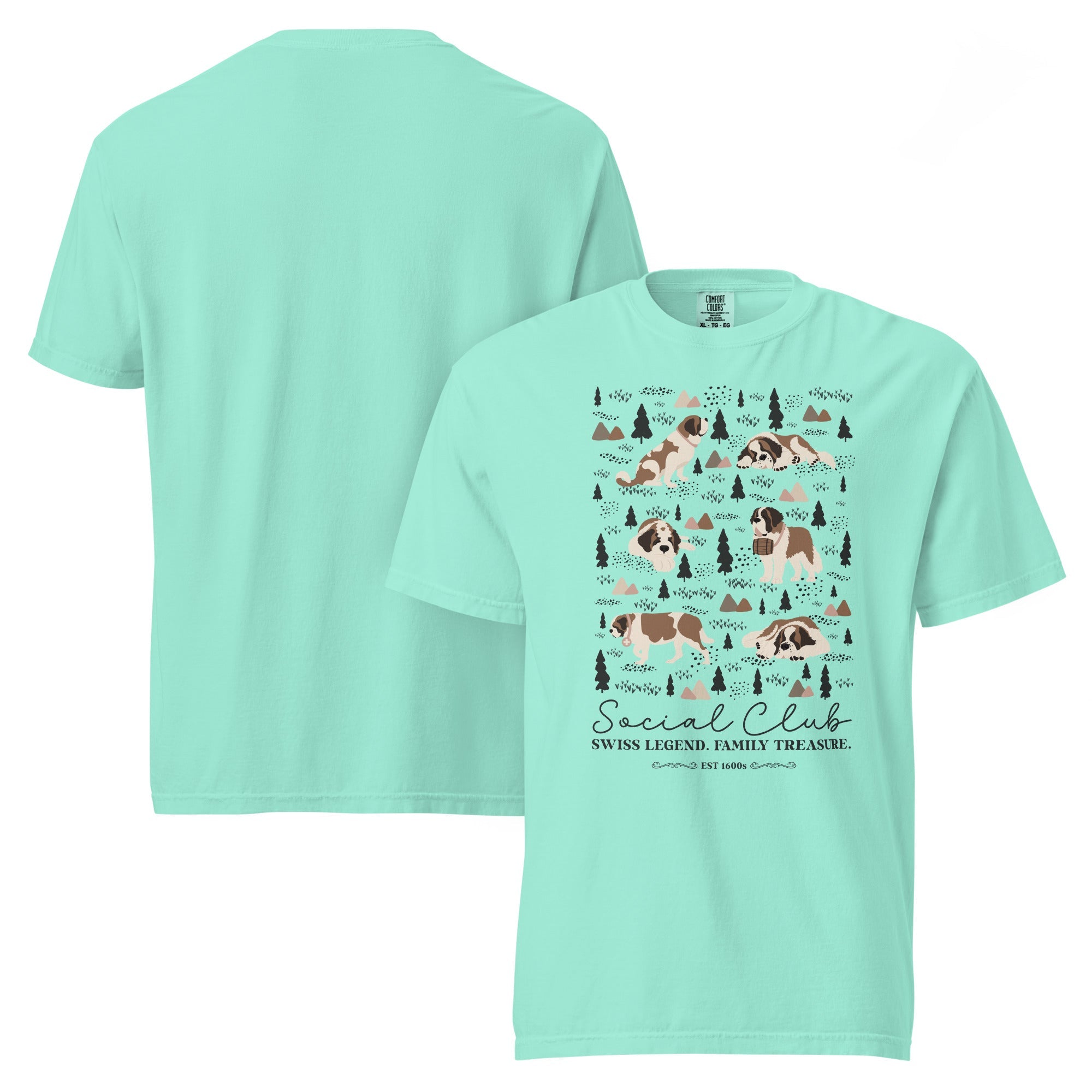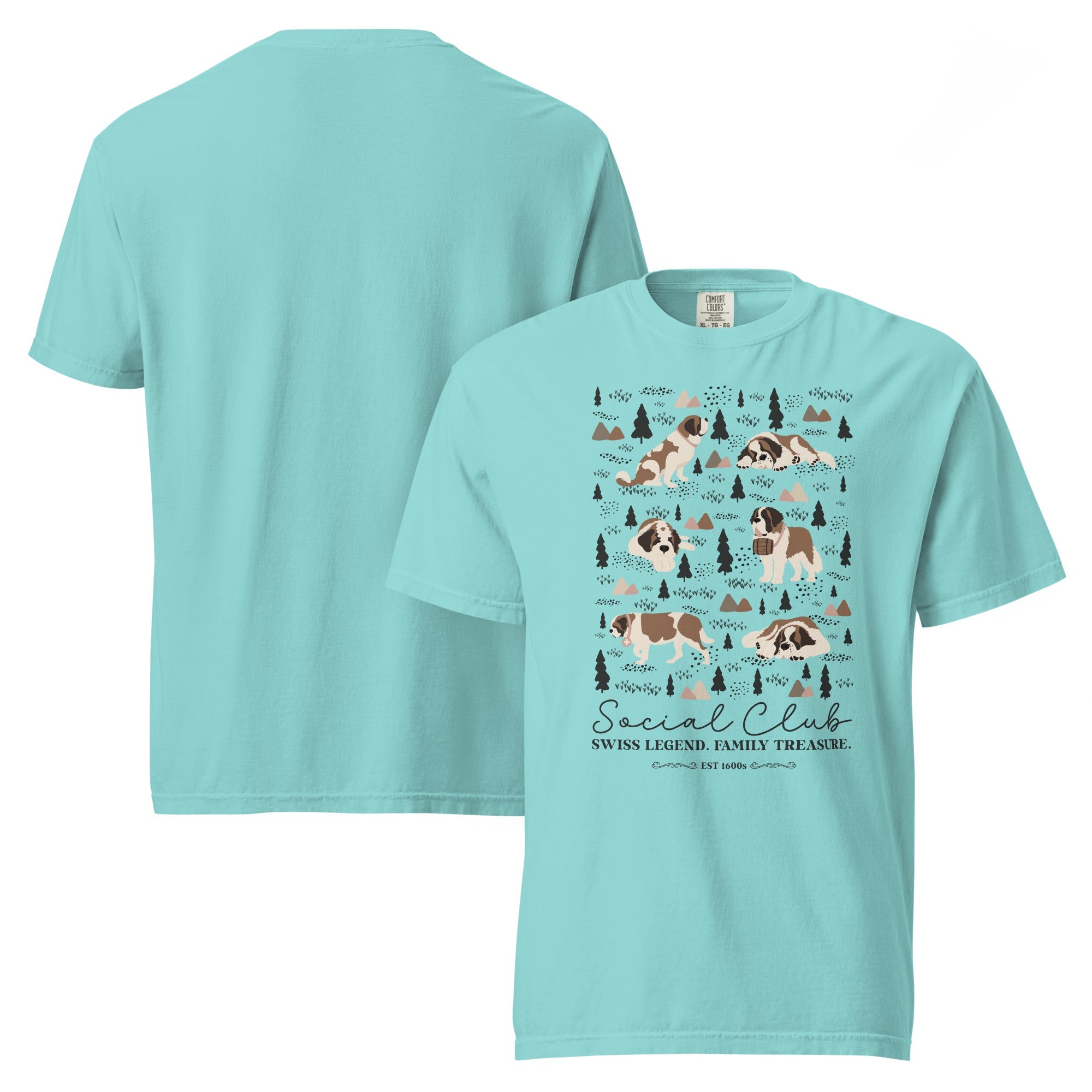 This heavyweight Comfort Colors® tee combines a structured fit with a soft, lived-in feel, thanks to garment-dyeing. Featuring a charming woodland, mountain and Saint Bernard design on the back, it’s the perfect gift for St Bernard dog lovers and anyone who appreciates cozy, timeless style.