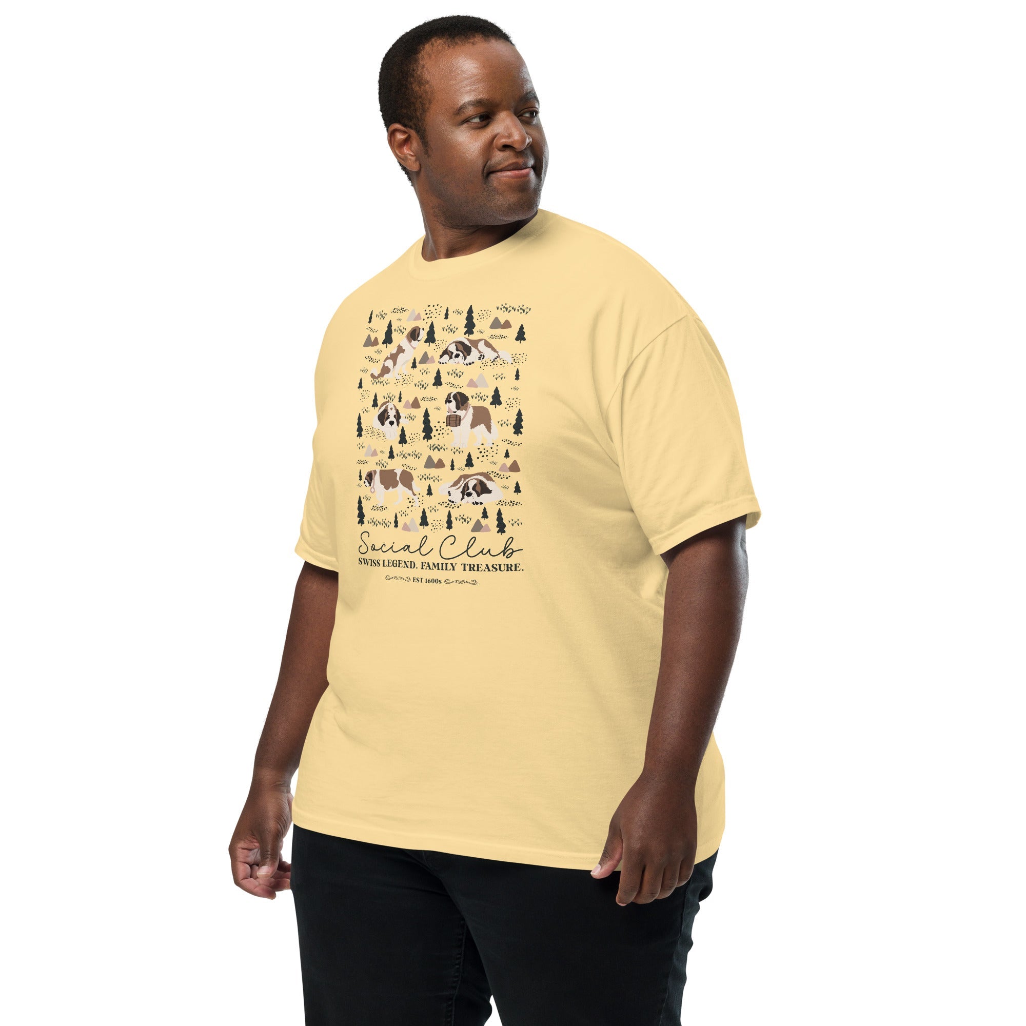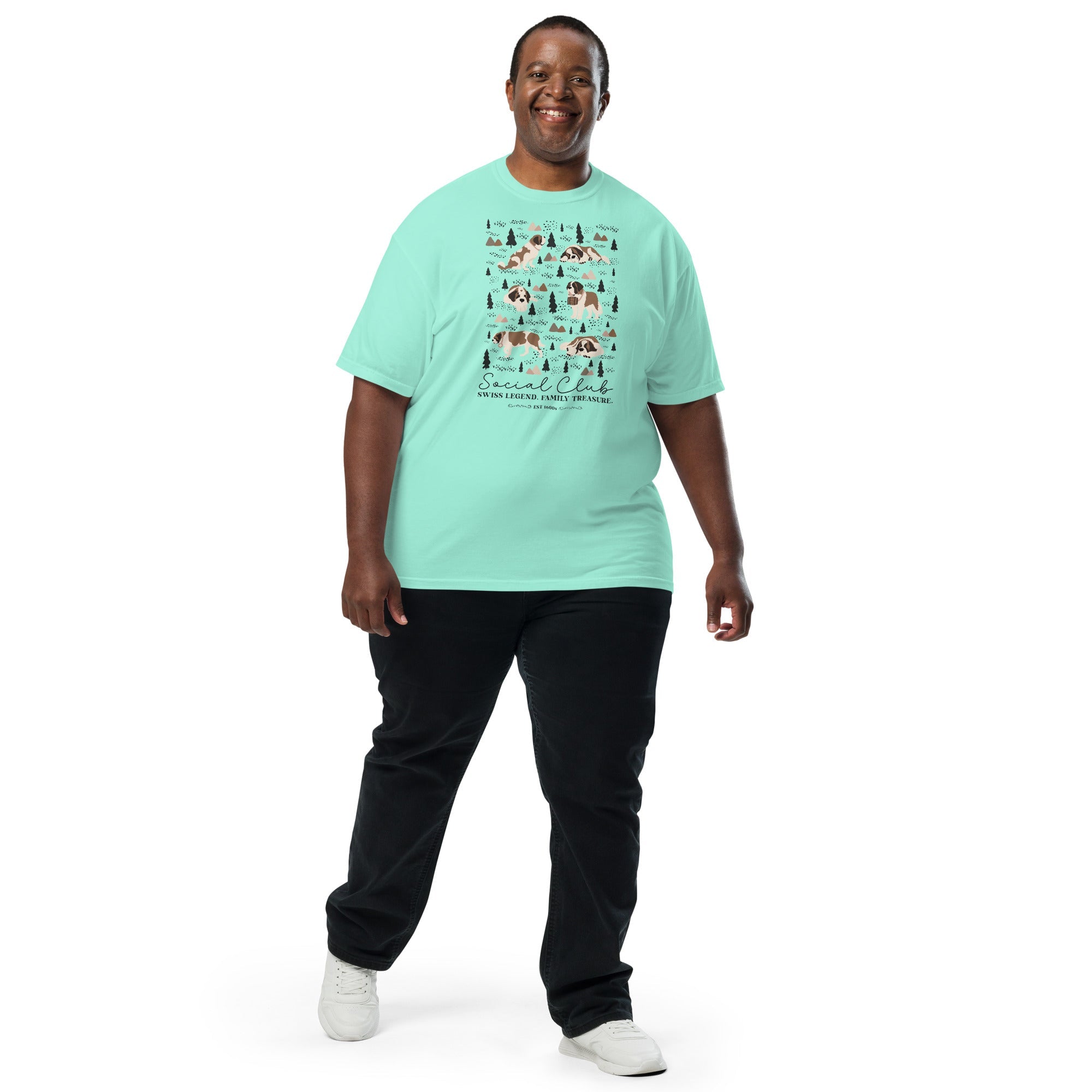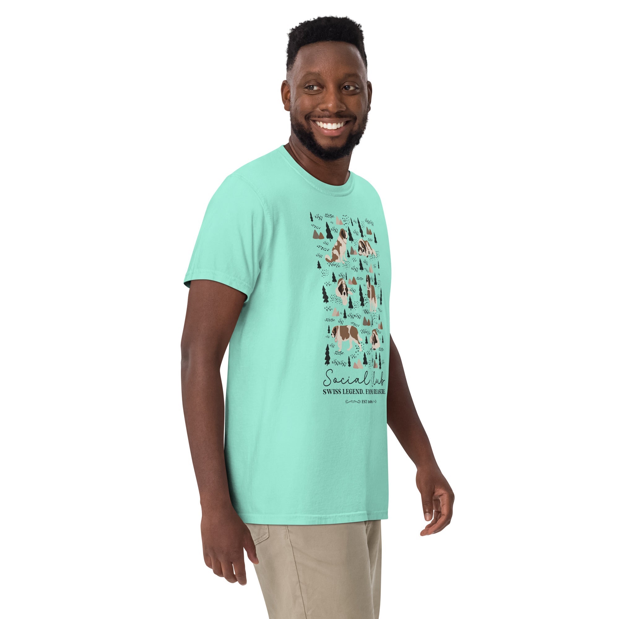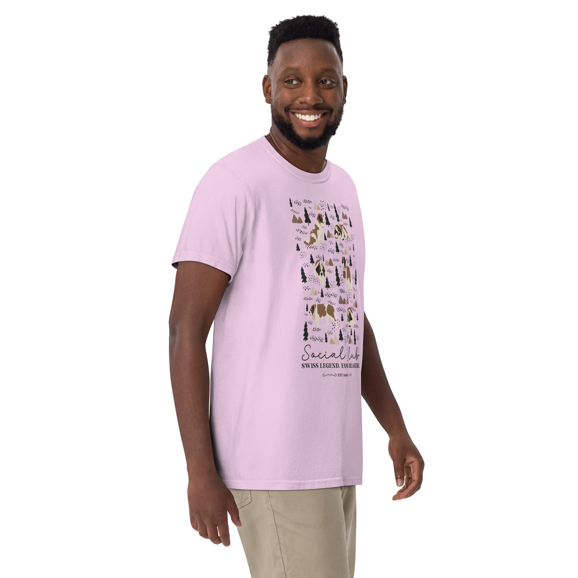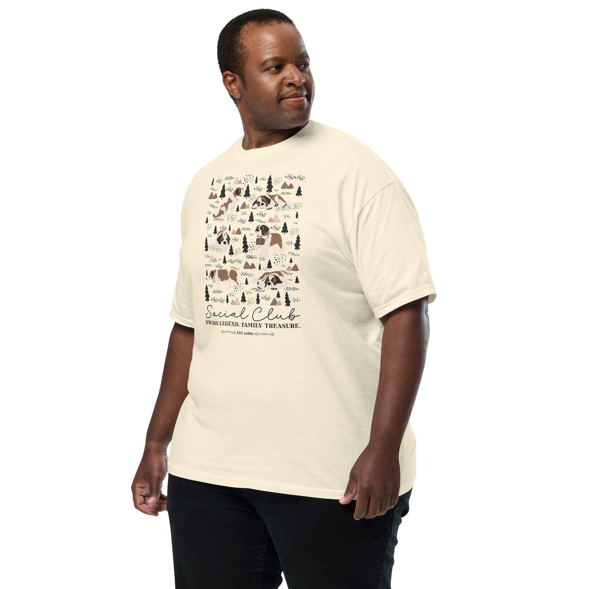 This heavyweight Comfort Colors® tee combines a structured fit with a soft, lived-in feel, thanks to garment-dyeing. Featuring a charming woodland, mountain and Saint Bernard design on the back, it’s the perfect gift for St Bernard dog lovers and anyone who appreciates cozy, timeless style.