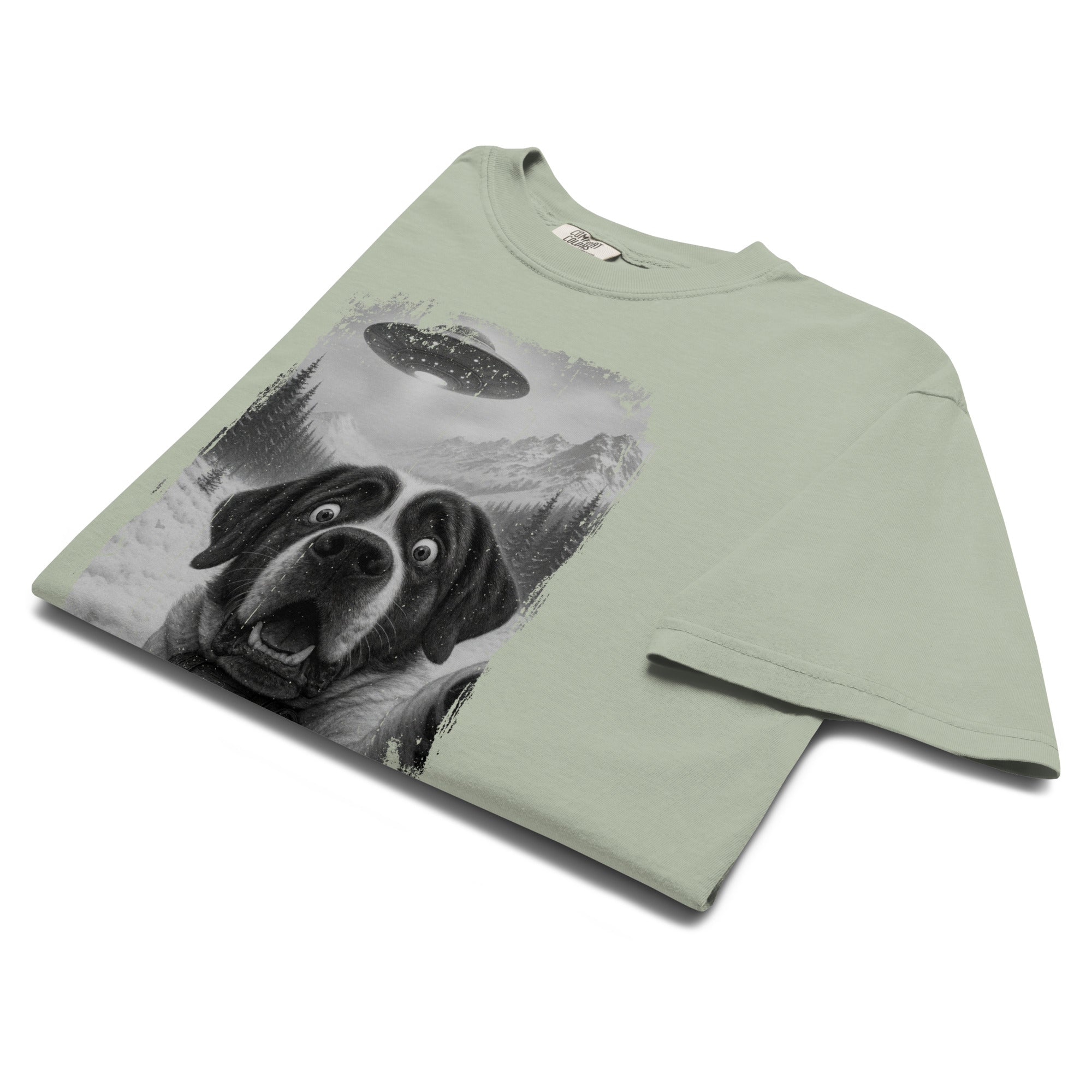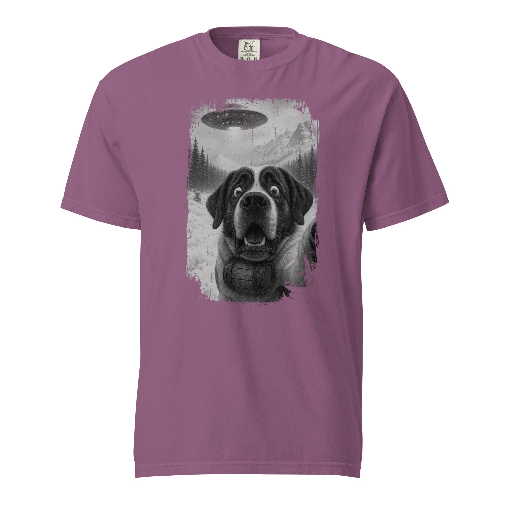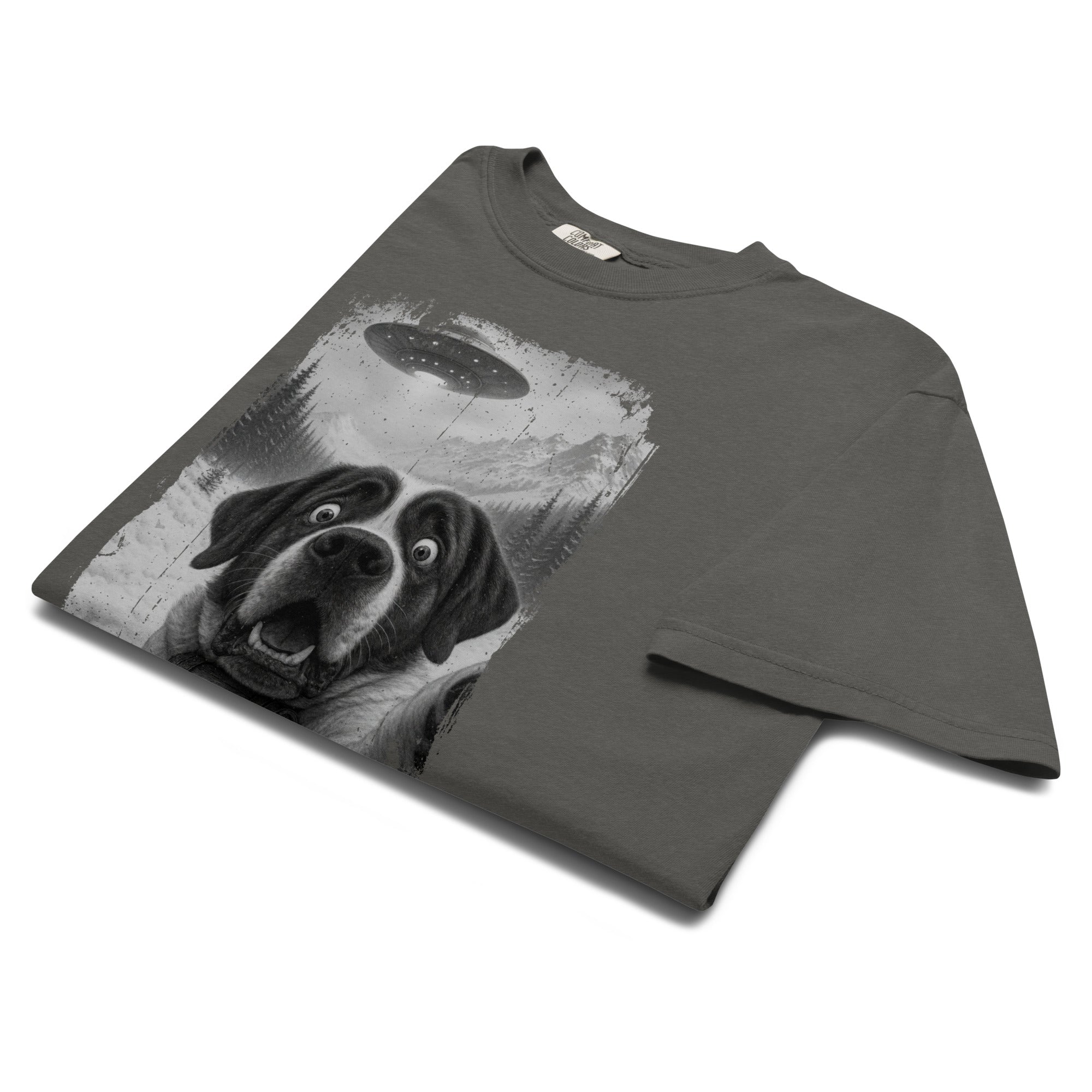 Proof that even the bravest mountain rescuer can be caught off guard! This hilarious tee captures our big-hearted Saint mid-selfie just as a UFO swoops in above the alpine peaks. Whether he’s documenting his latest wander or preparing for liftoff, it’s a must-have for Saint Bernard lovers with a playful sense of humor.