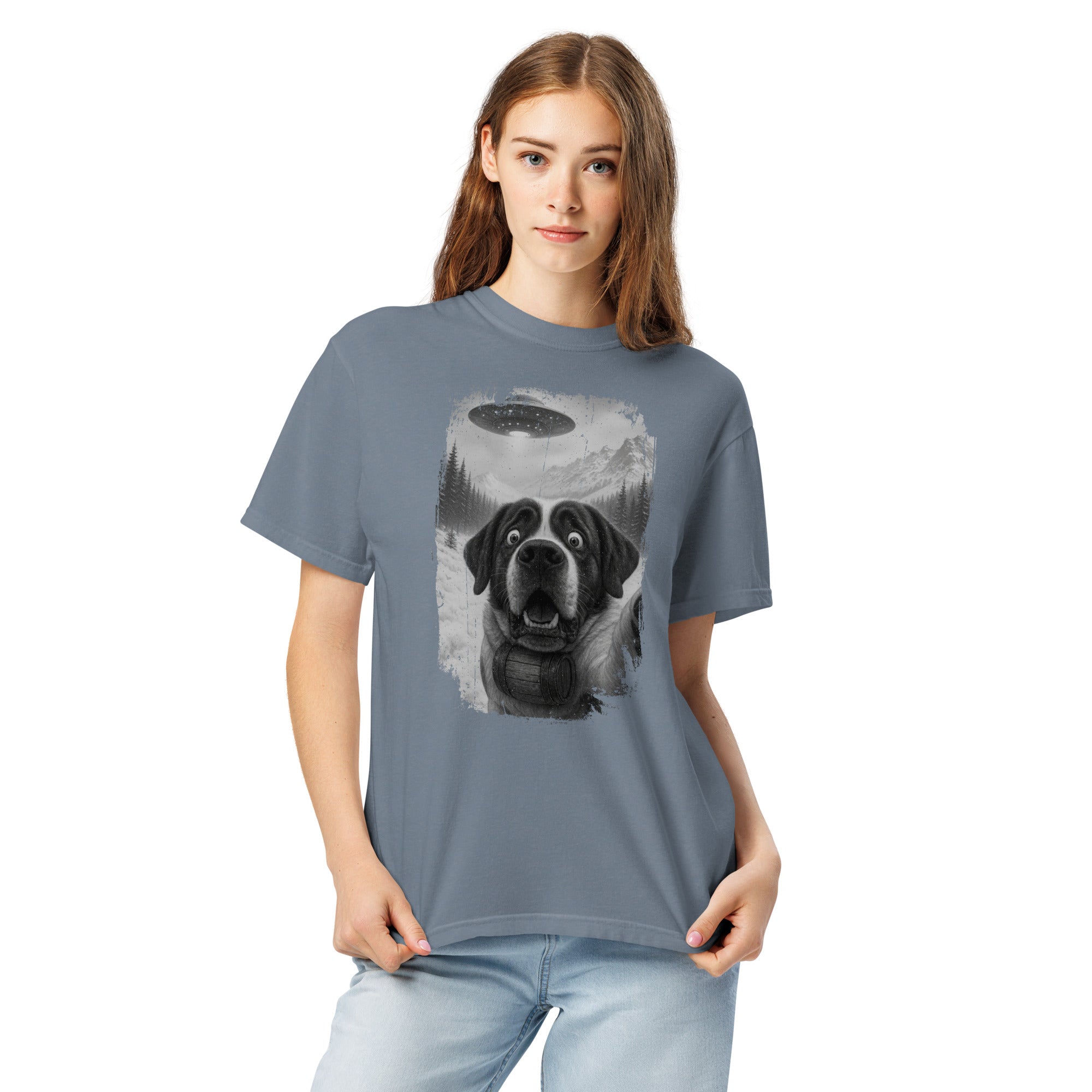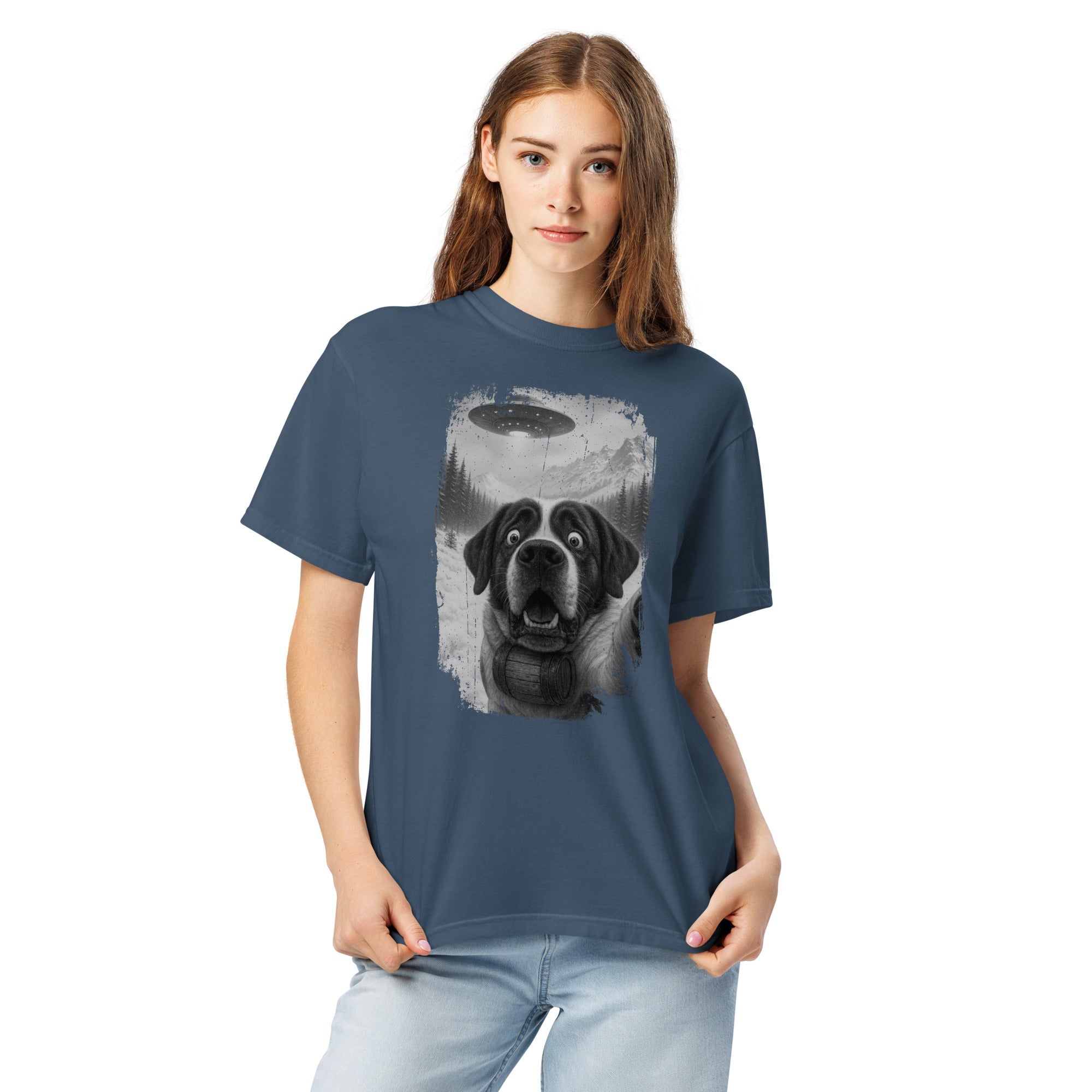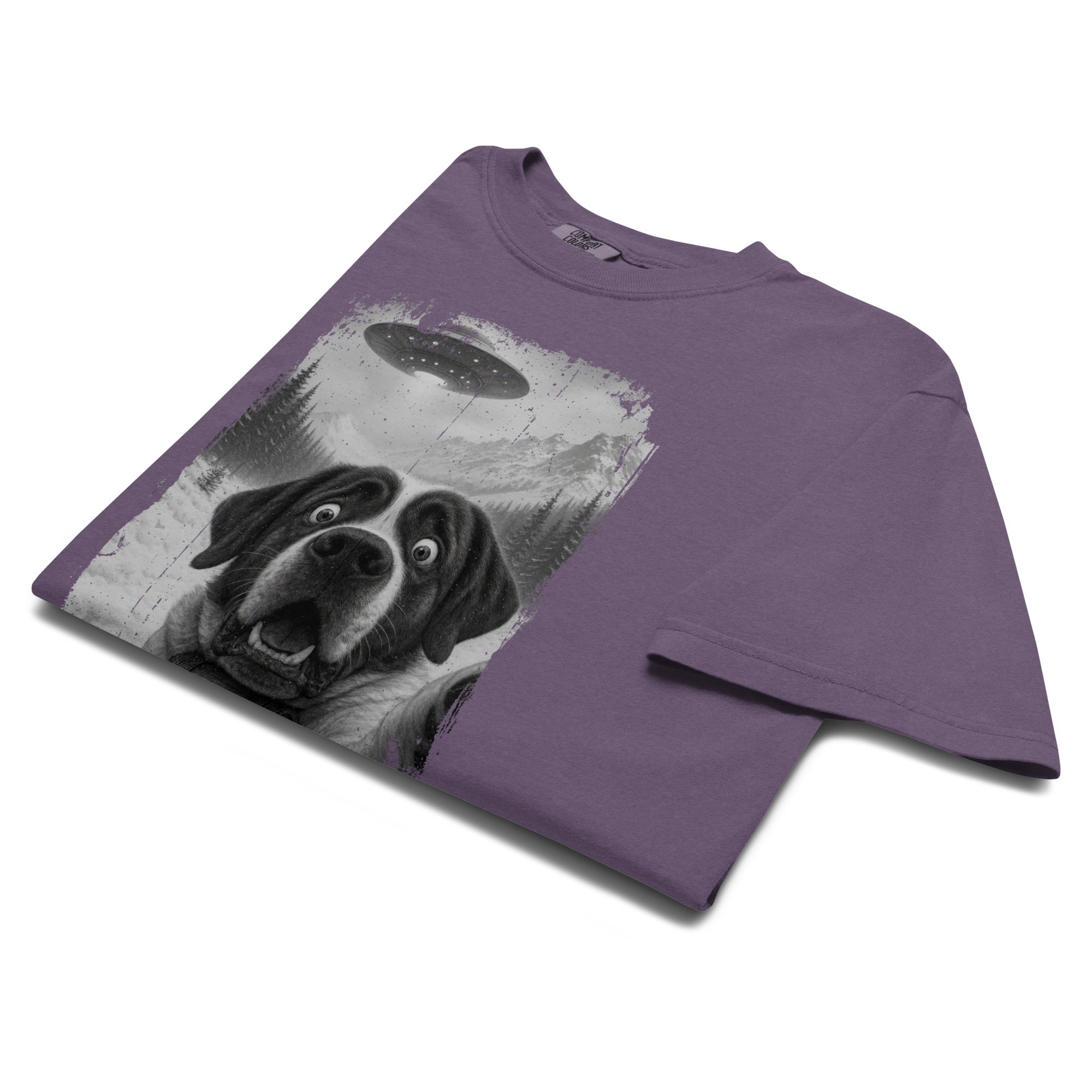 Proof that even the bravest mountain rescuer can be caught off guard! This hilarious tee captures our big-hearted Saint mid-selfie just as a UFO swoops in above the alpine peaks. Whether he’s documenting his latest wander or preparing for liftoff, it’s a must-have for Saint Bernard lovers with a playful sense of humor.