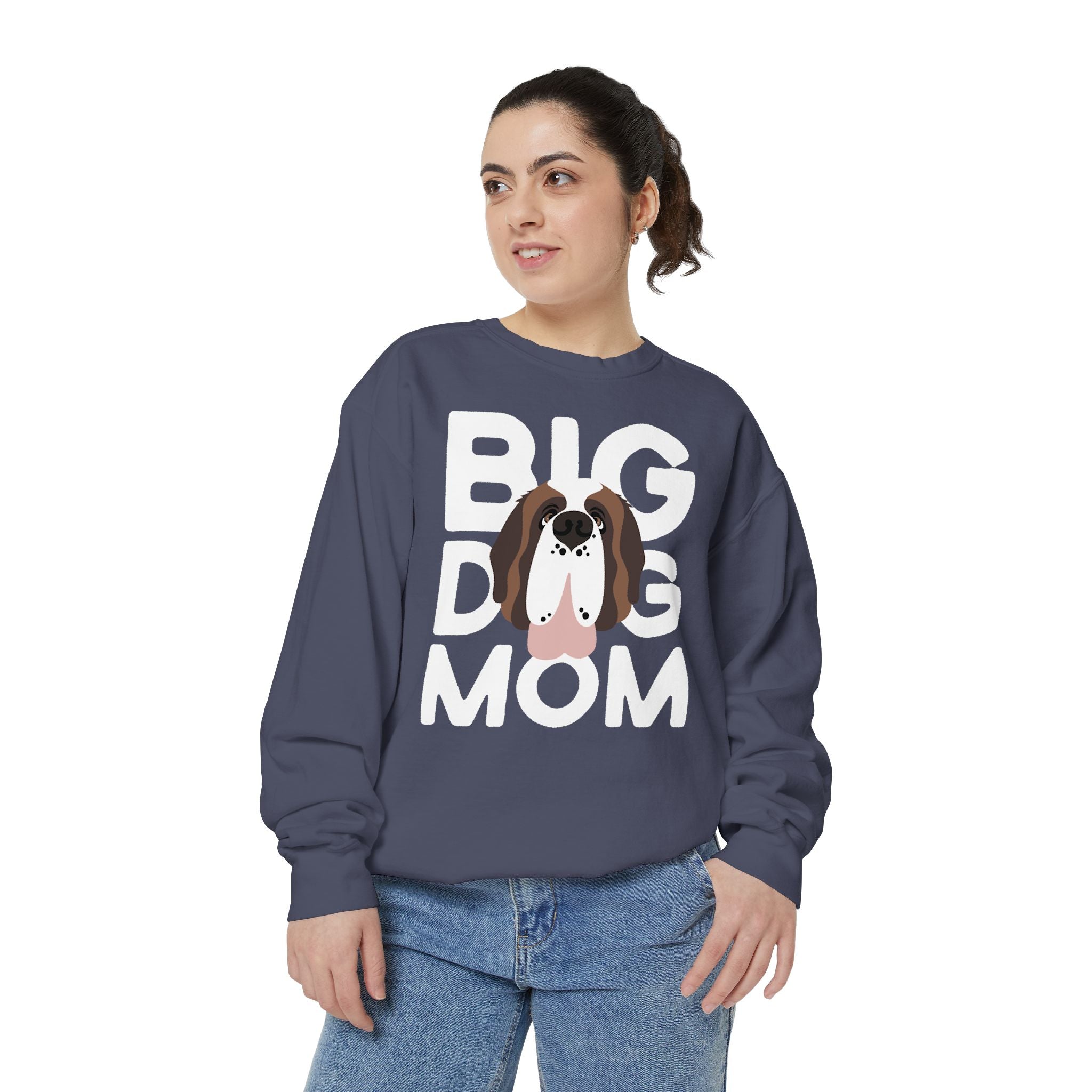 Wrap yourself in cozy comfort with our big dog mom garment-dyed sweatshirt. From the first wear, this sweatshirt feels like a well-loved favorite, with its garment-dyed fabric offering a charming, faded look and a super-soft feel. The heavyweight fleece provides structure without stiffness, while the relaxed fit delivers an effortlessly cool, trendy vibe. Whether you're lounging at home with your favorite pup or heading out for a walk, this sweatshirt is as comfy as a Saint Bernard cuddle!