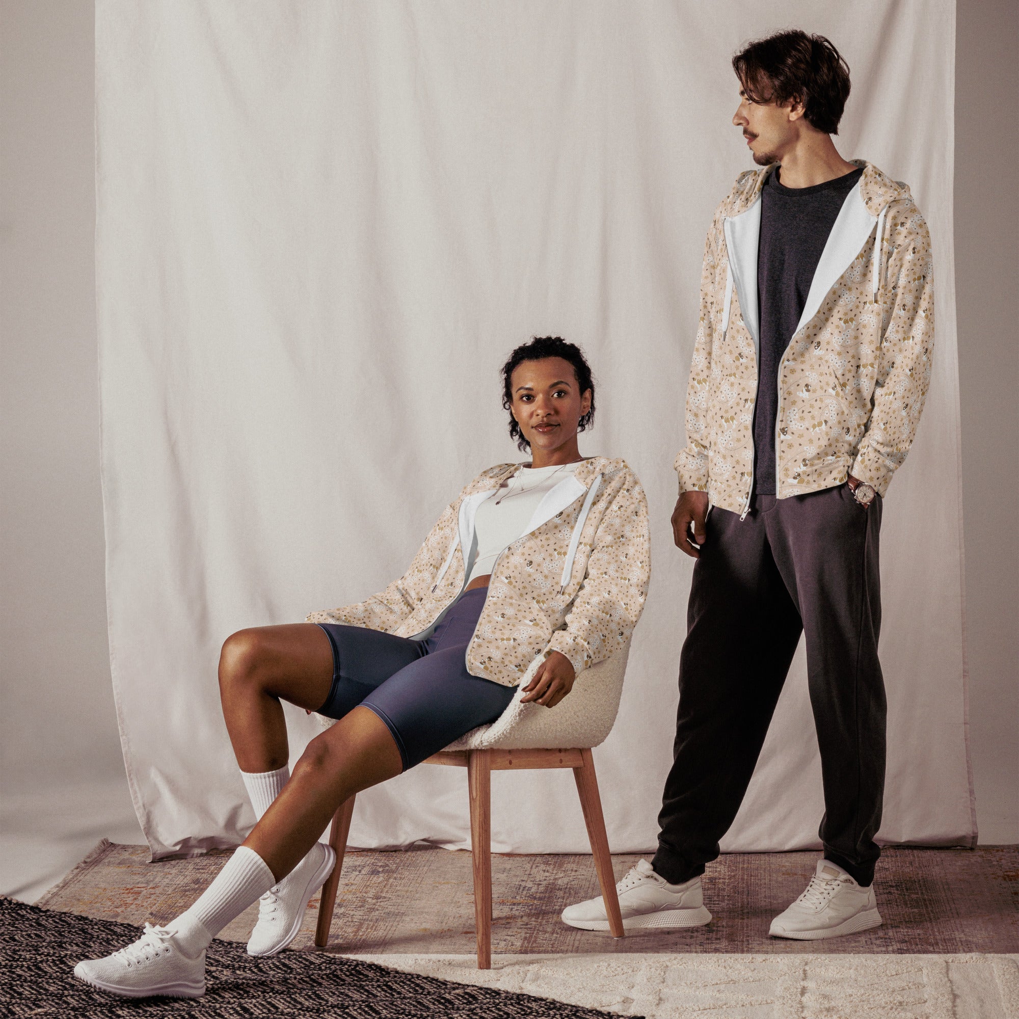Made with recycled fabric and a brushed fleece interior, it will be your go-to cozy layer that's perfect for cool evenings, morning strolls, or curling up with your pup. The unisex relaxed fit, double-lined hood, and premium zipper make it as functional as it is beautiful.
