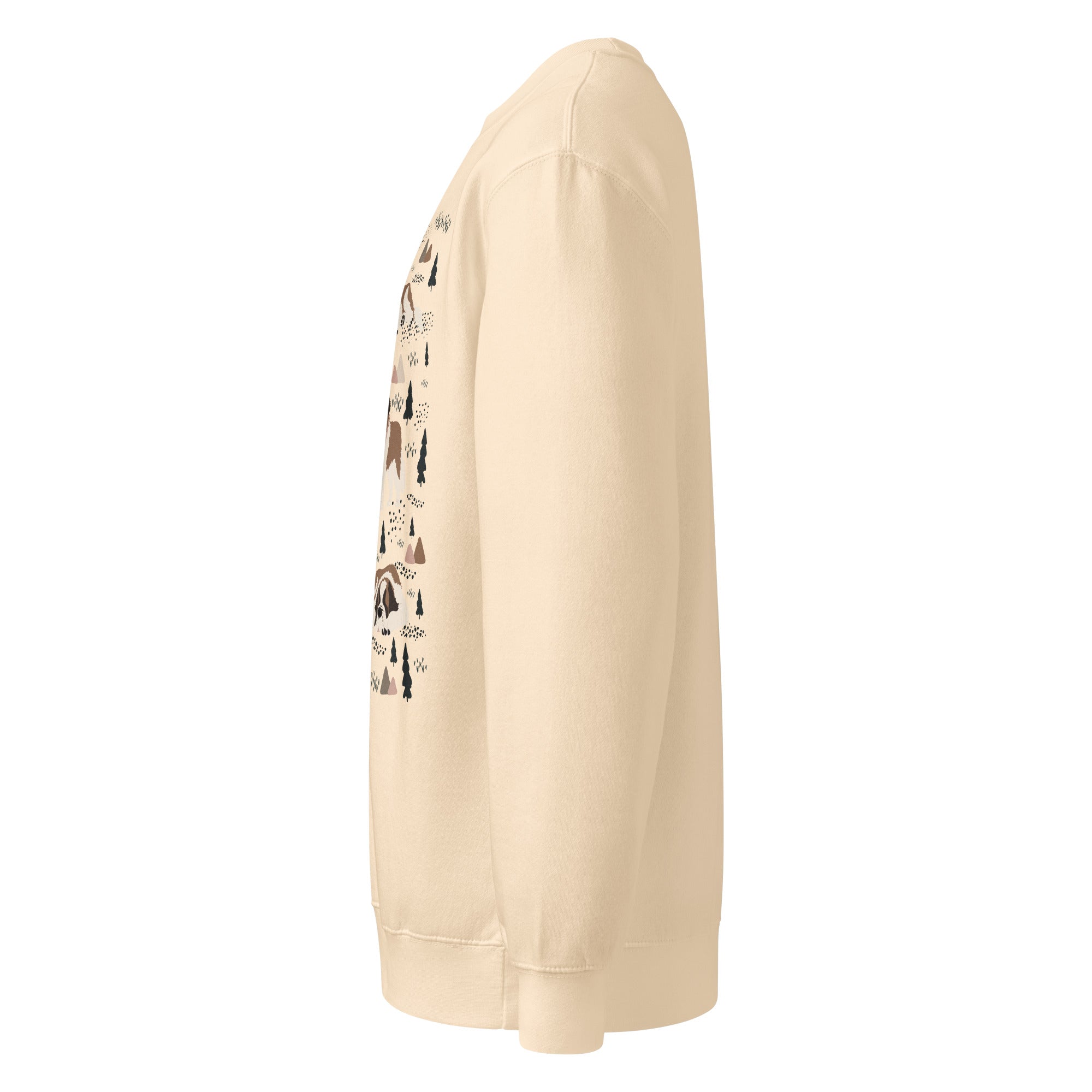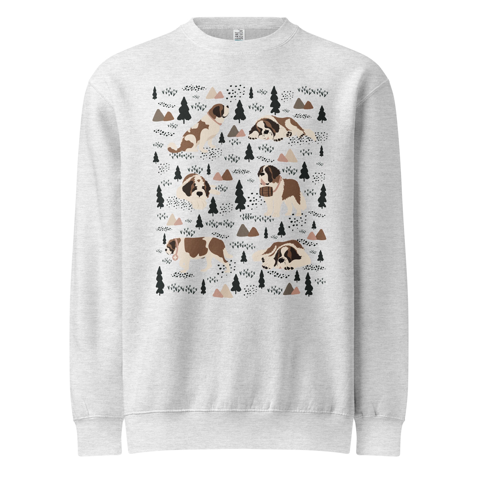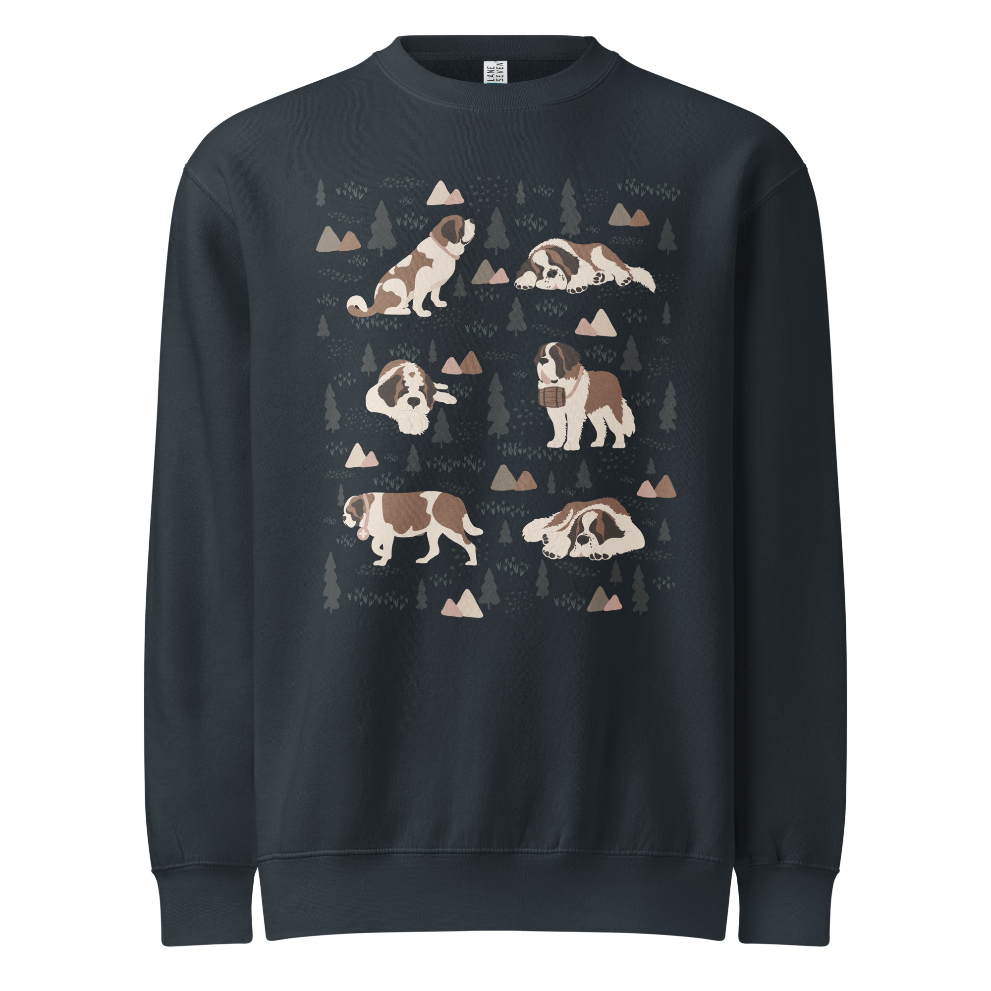 Stay cozy in classic style with our Woodland Six Saint Bernard premium crewneck sweatshirt. Featuring a charming woodland scene with six adorable Saint Bernards, this clean and timeless fleece is made for everyday comfort. With a structured fit, soft cotton face, and easy-to-layer design, it’s built to last and perfect for dog walks, mountain escapes, or just lounging at home.