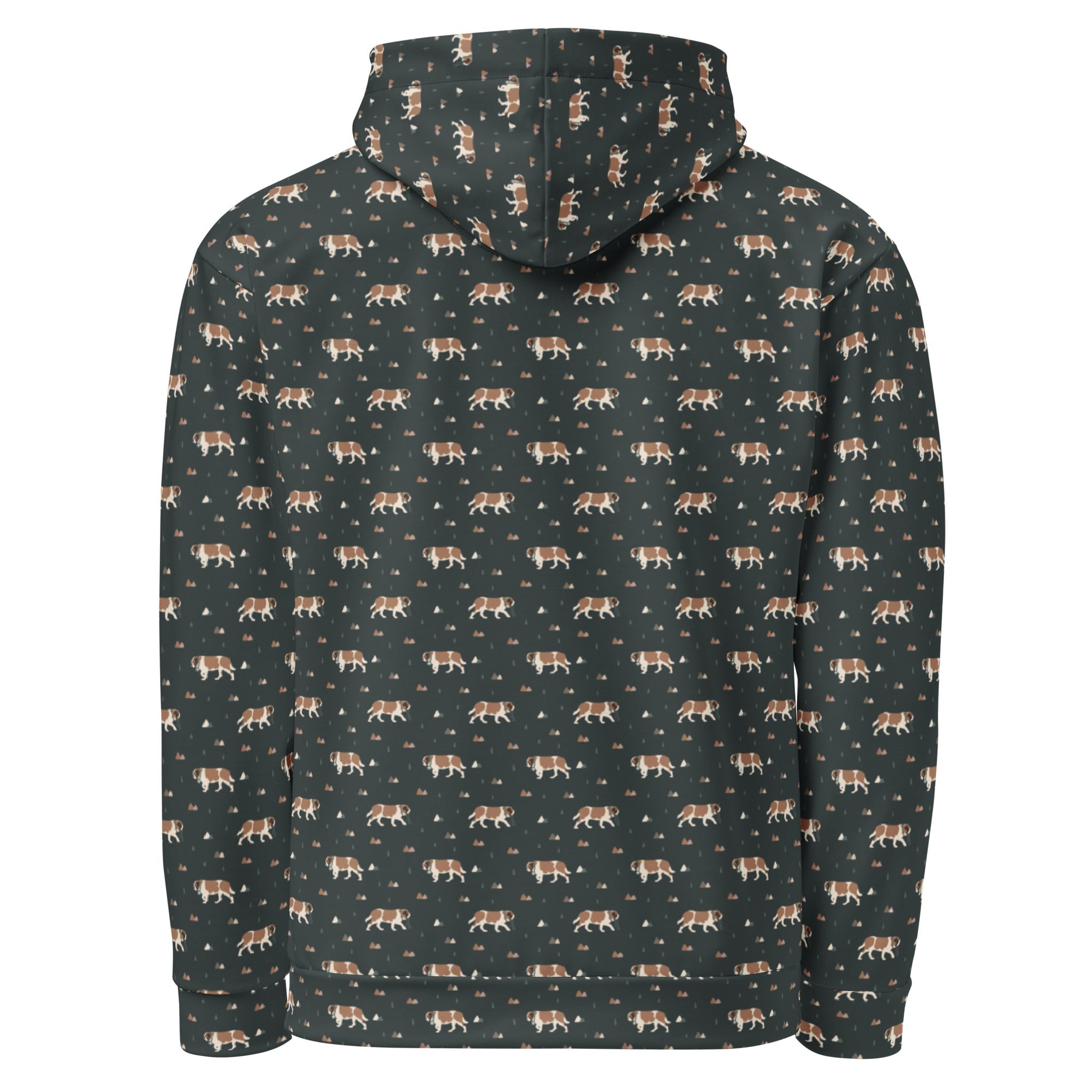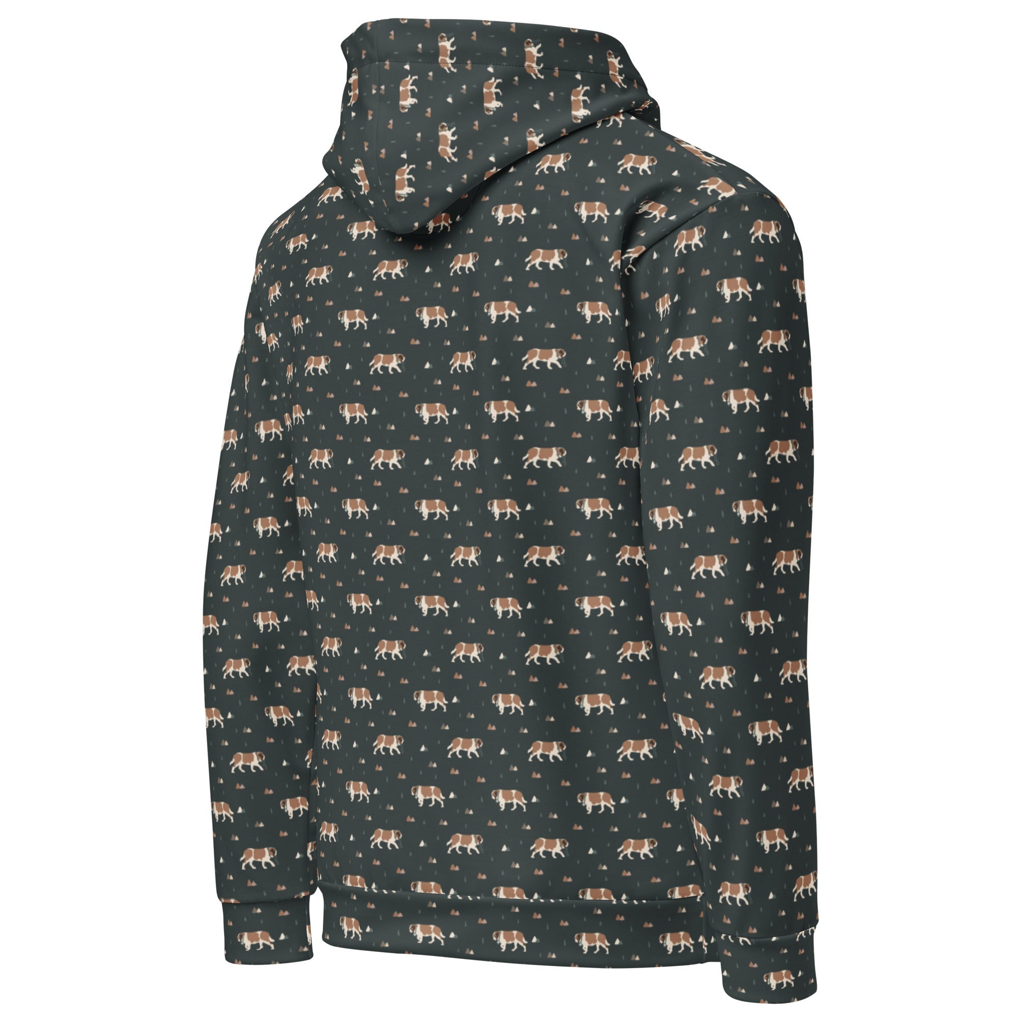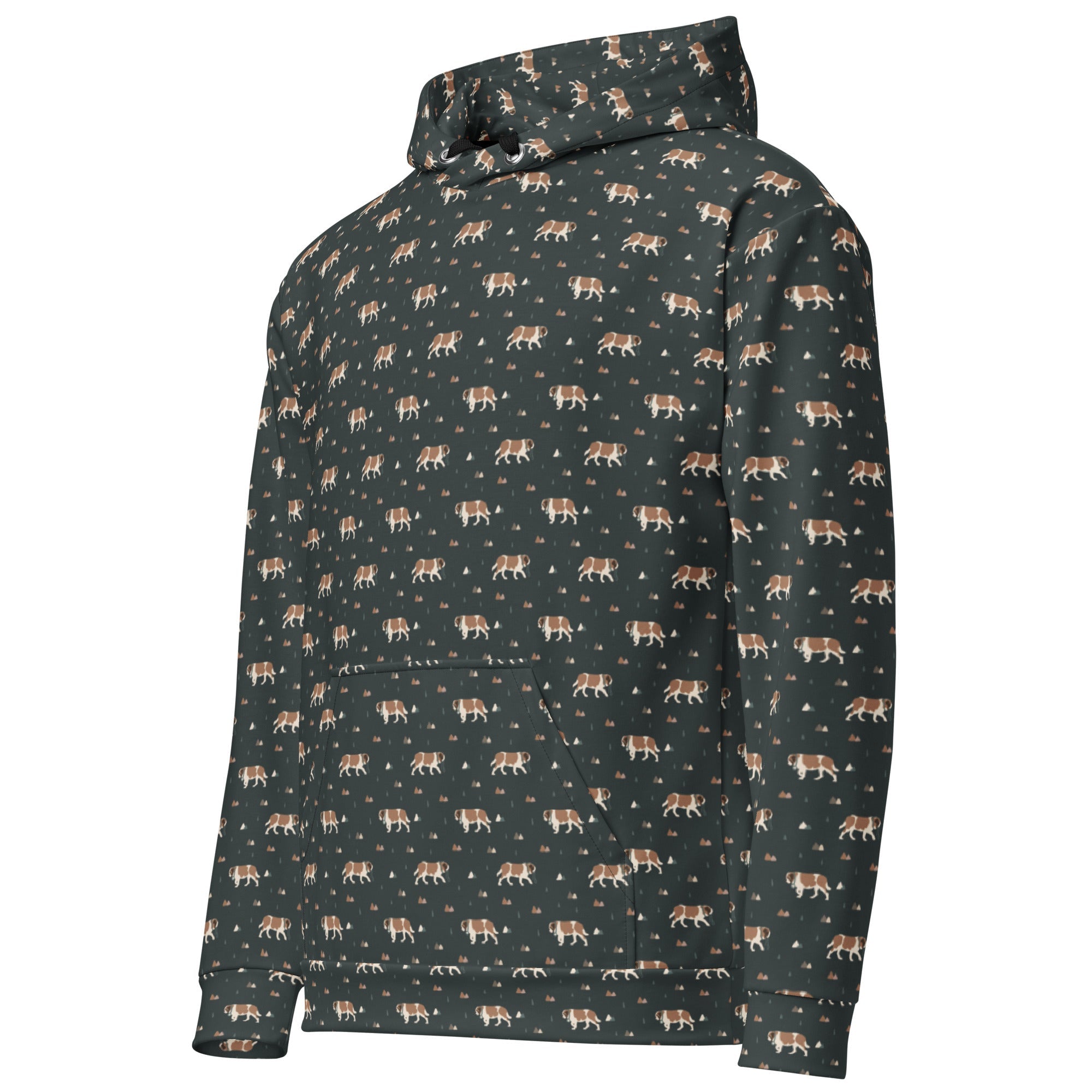 Made for cozy wanderers and big dog lovers alike, this hoodie pairs a smooth, cotton-feel exterior with a luxuriously soft brushed fleece interior. The unisex fit is perfect for layering or lounging, while the double-lined hood and matching all-over print add a polished finish that’s both stylish and functional.