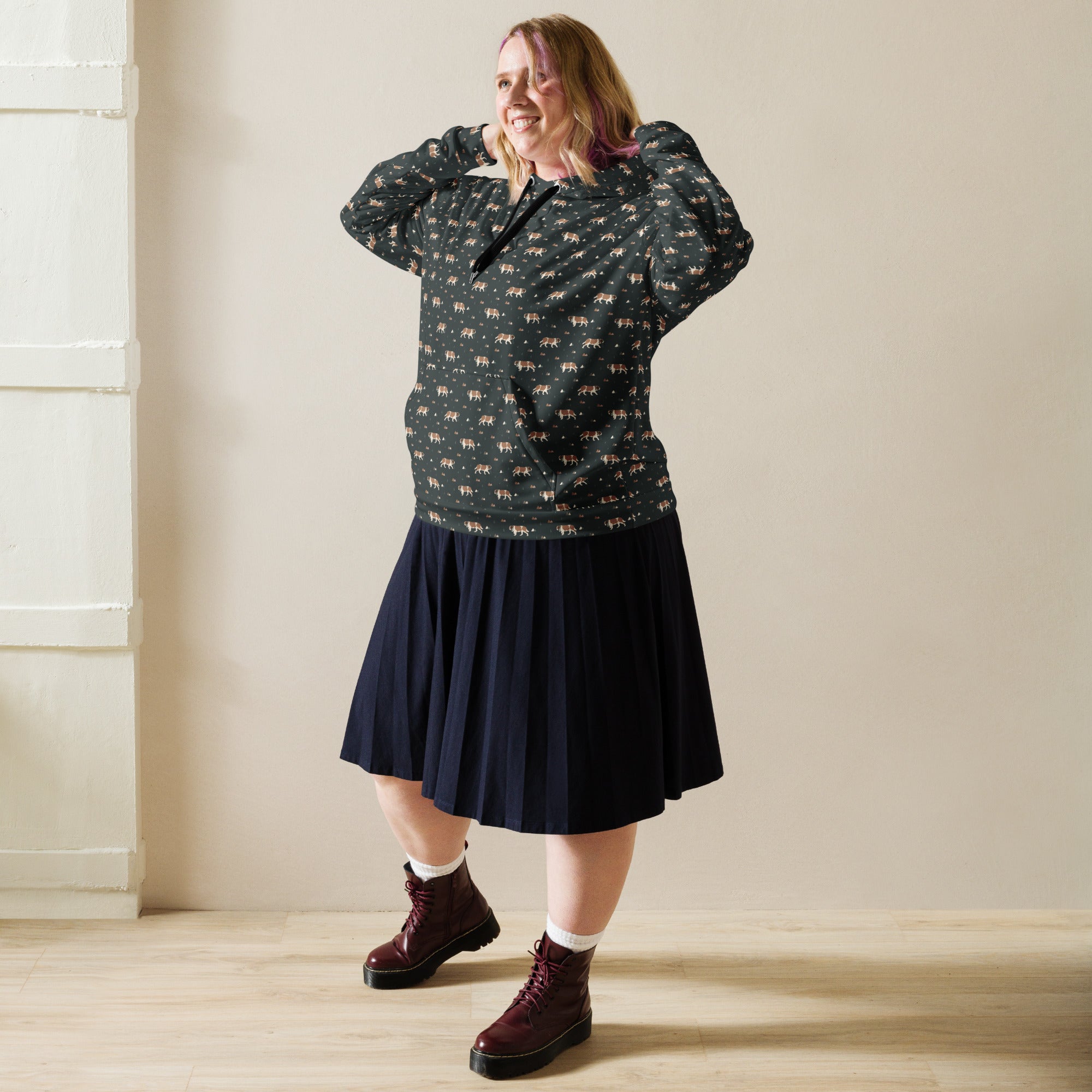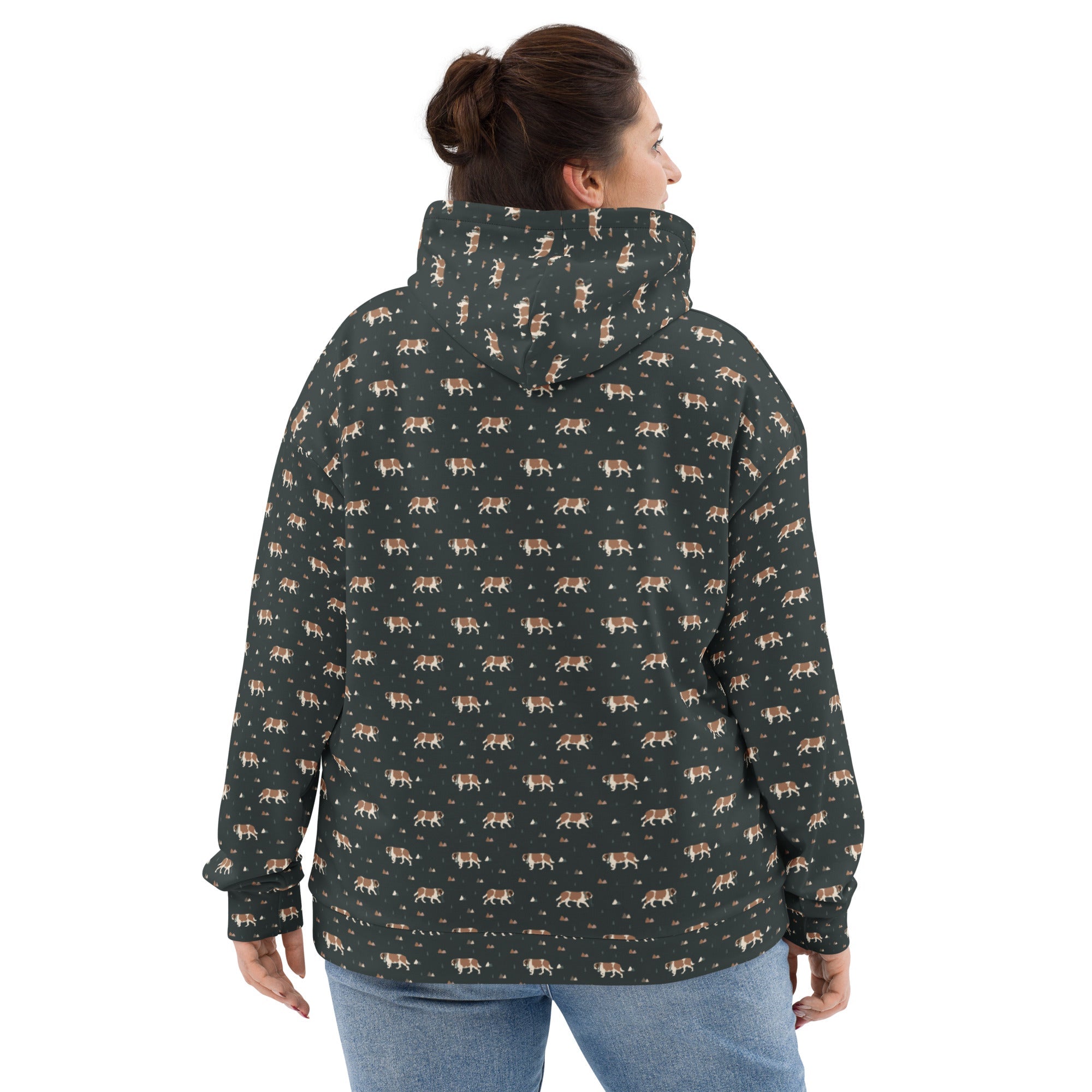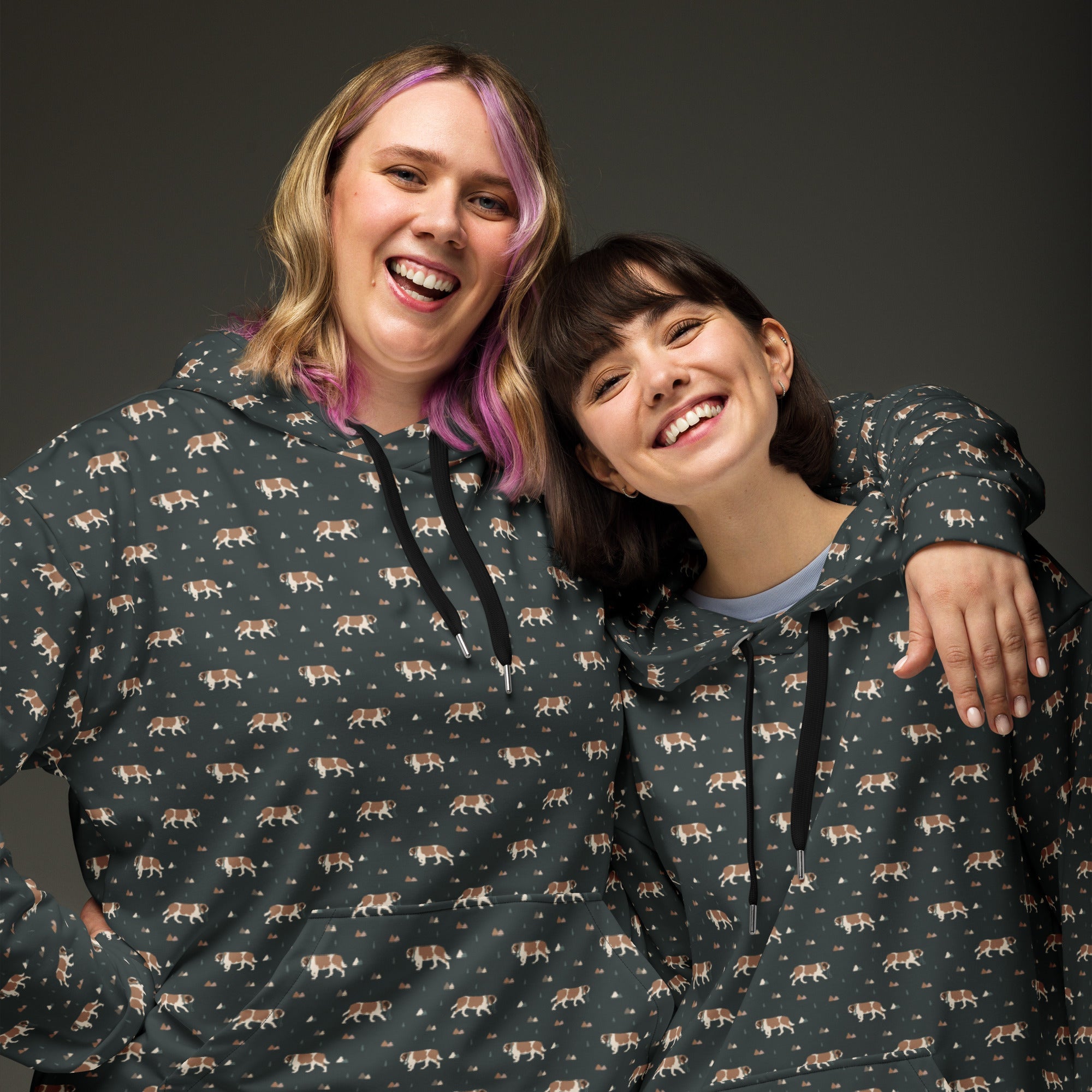 Made for cozy wanderers and big dog lovers alike, this hoodie pairs a smooth, cotton-feel exterior with a luxuriously soft brushed fleece interior. The unisex fit is perfect for layering or lounging, while the double-lined hood and matching all-over print add a polished finish that’s both stylish and functional.